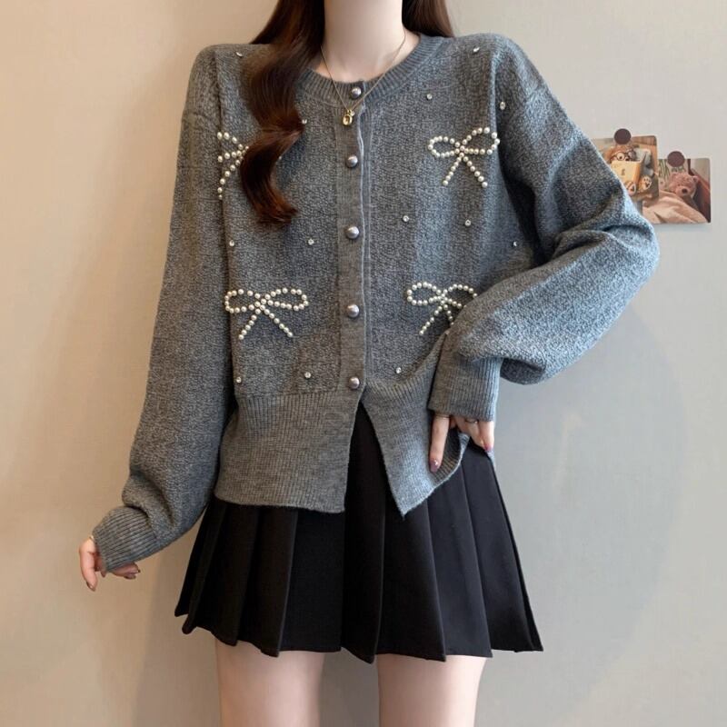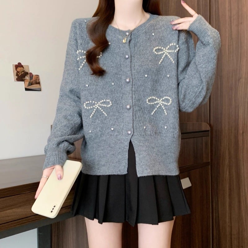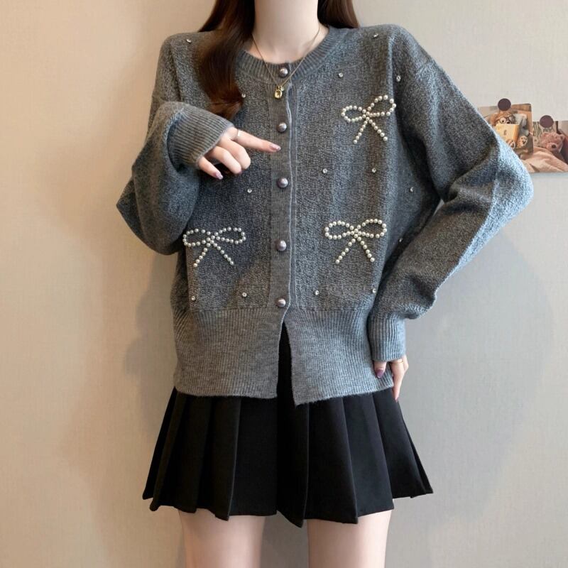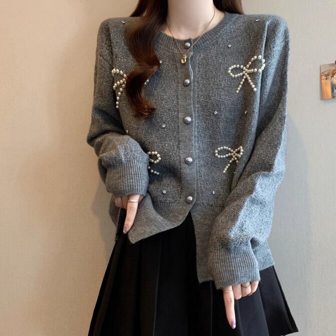 3色/リボンハニカムニットカーデ ・20306