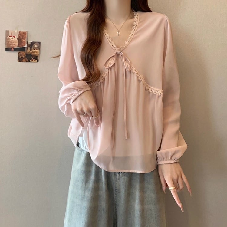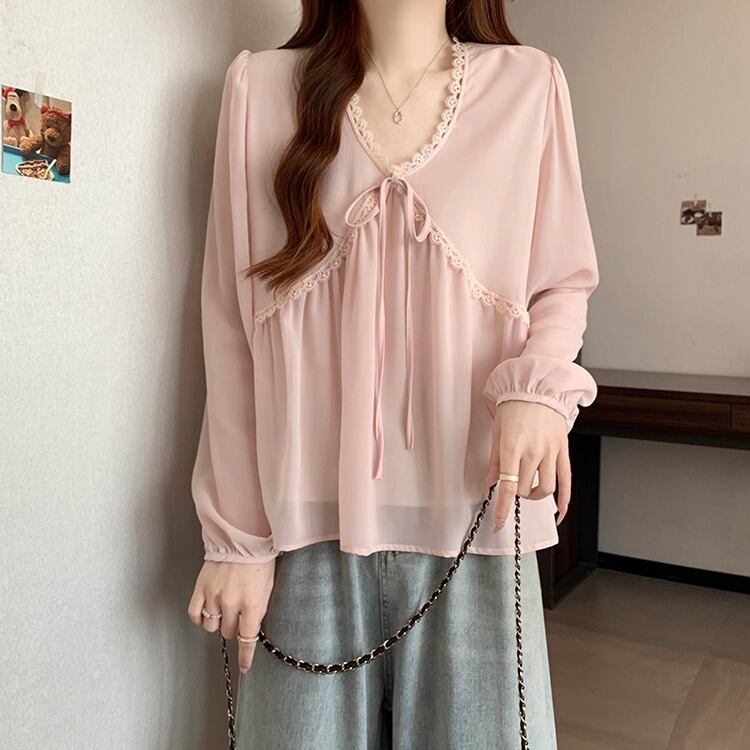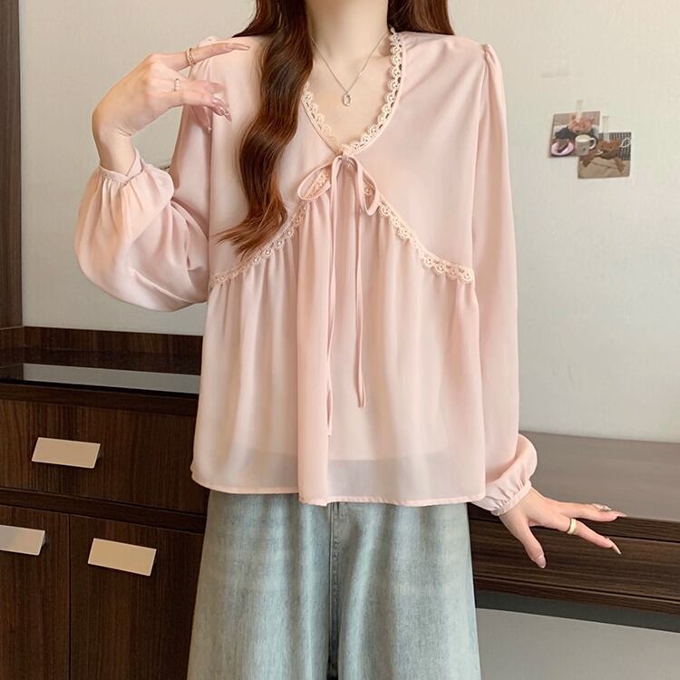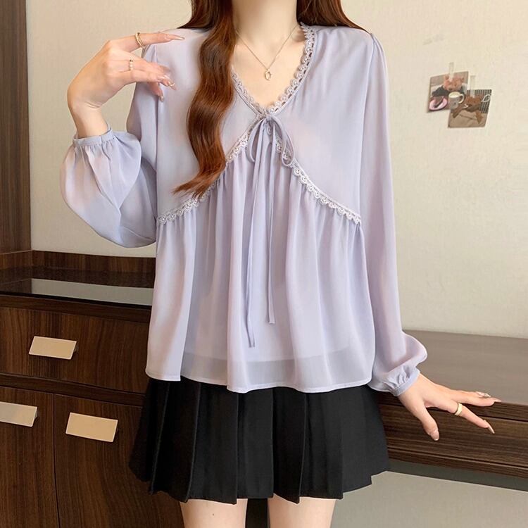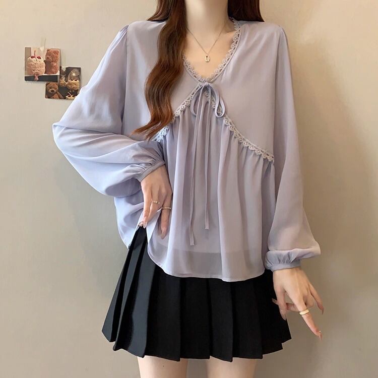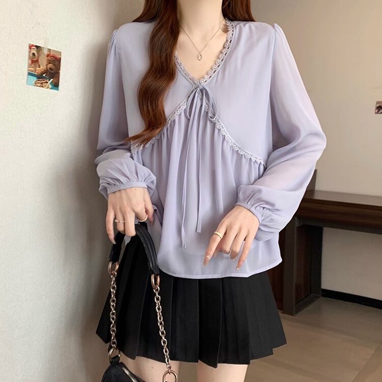 レースカラーアシメボタンドッキングトップス ・71106