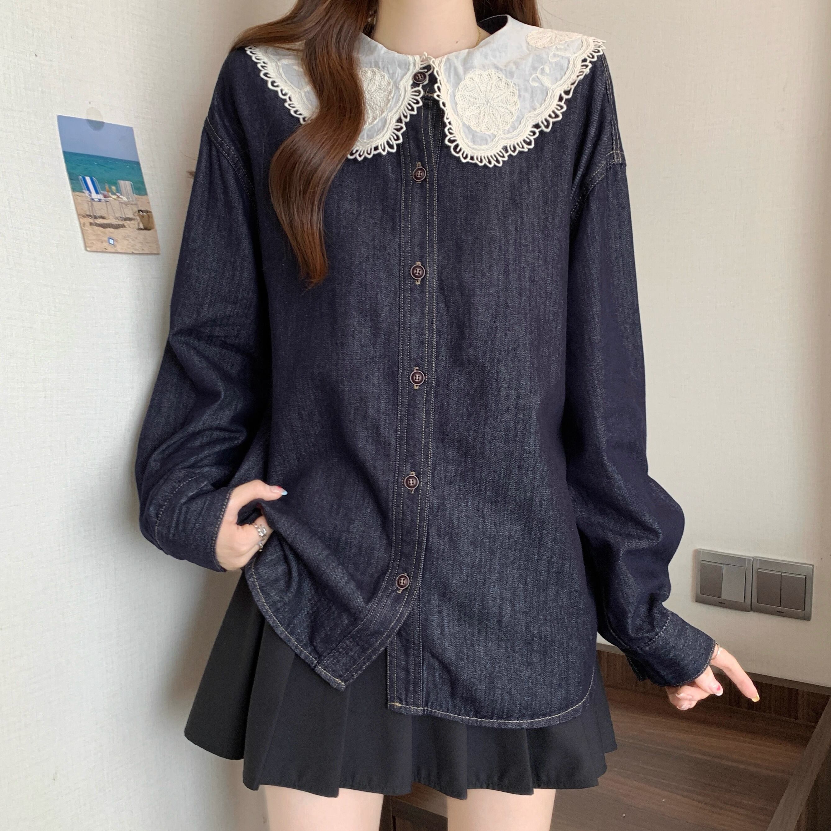 ボリュームスリーブレースラウンドカラーブラウス ・67546