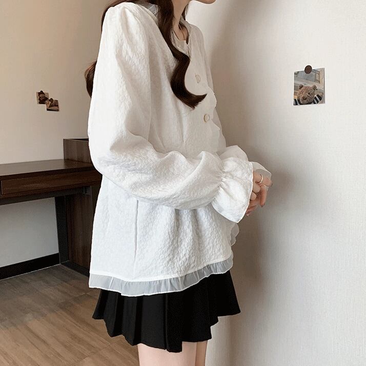 ▽Instagram「新作情報配信中」 フォローお願いいたします。 https://www.instagram.com/sucrier_closet/ ▼カラー ブラック(画像2枚目) オフホワイト(画像3枚目) ▼サイズ [ Mサイズ ] 着丈56cm バスト90cm 肩幅37cm 袖丈56cm [ Lサイズ ] 着丈57cm バスト94cm 肩幅38cm 袖丈57cm [ XLサイズ ] 着丈58cm バスト98cm 肩幅39cm 袖丈58cm [ 2XLサイズ ] 着丈59cm バスト102cm 肩幅40cm 袖丈59cm ※1-3cm程度の誤差がある場合がございます。予めご了承ください。 ▼シーズン 春,秋 ▼同じカテゴリの商品はこちら https://www.sucrier.jp/categories/1713095 ▽お支払い方法 ・クレジットカード決済 ・キャリア決済 (docomo/au/Softbank/Y!mobile) ・後払い決済 (商品お届け後コンビニ払いなど) ▽注意点 ※こちらの商品は決済から10日-3週間前後でのお届けとなります。 ※配送日時指定等に関しては、ご指定できないことご了承くださいませ。 ※できる限り早くお届けできるように手配させて頂きます。 ※検品はしておりますが、もし届いた商品に不備がありましたら、誠実に対応させていただきます。 商品ID:SC071294