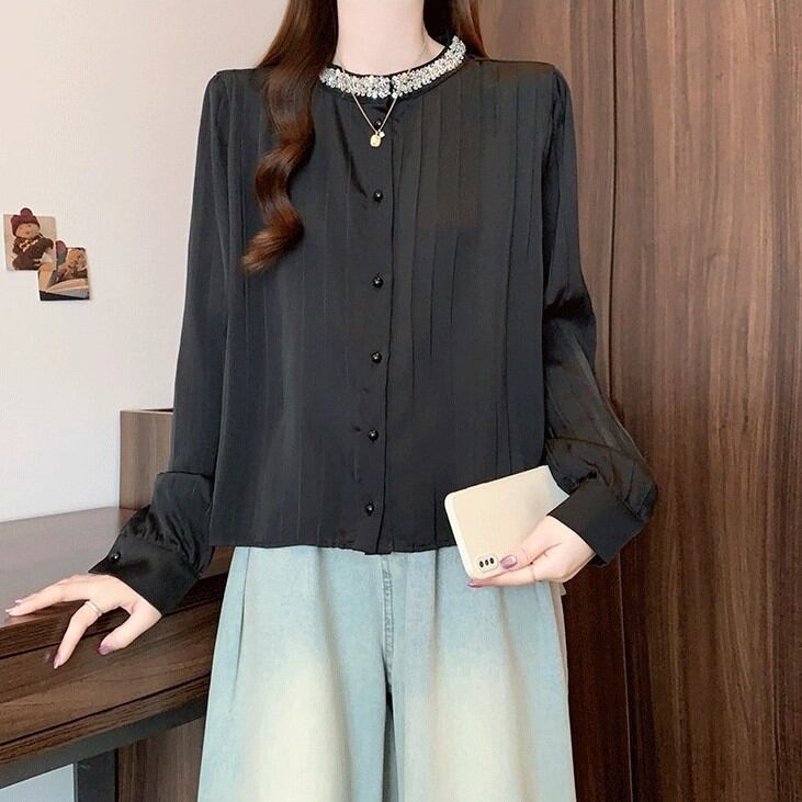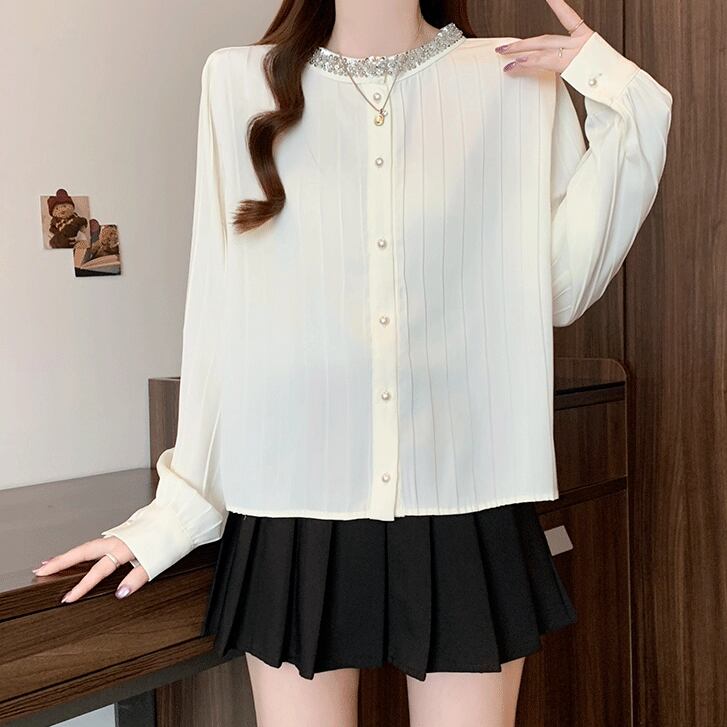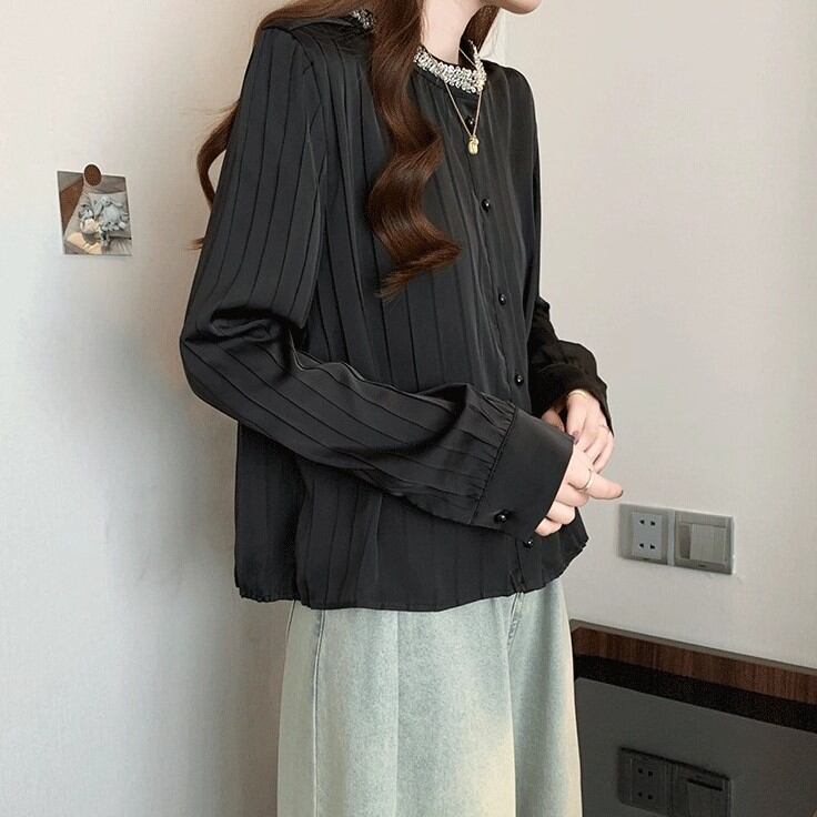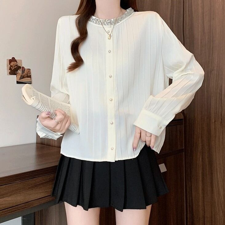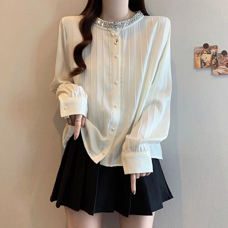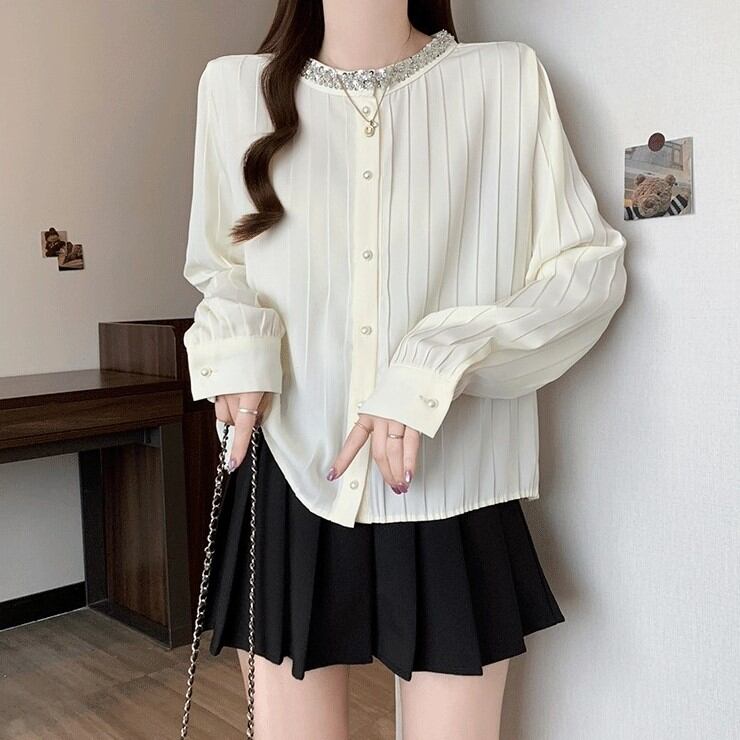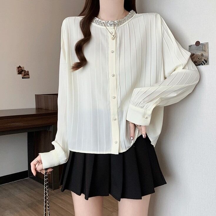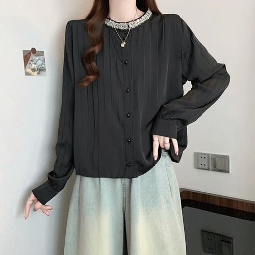 ボリュームスリーブレースラウンドカラーブラウス ・67546