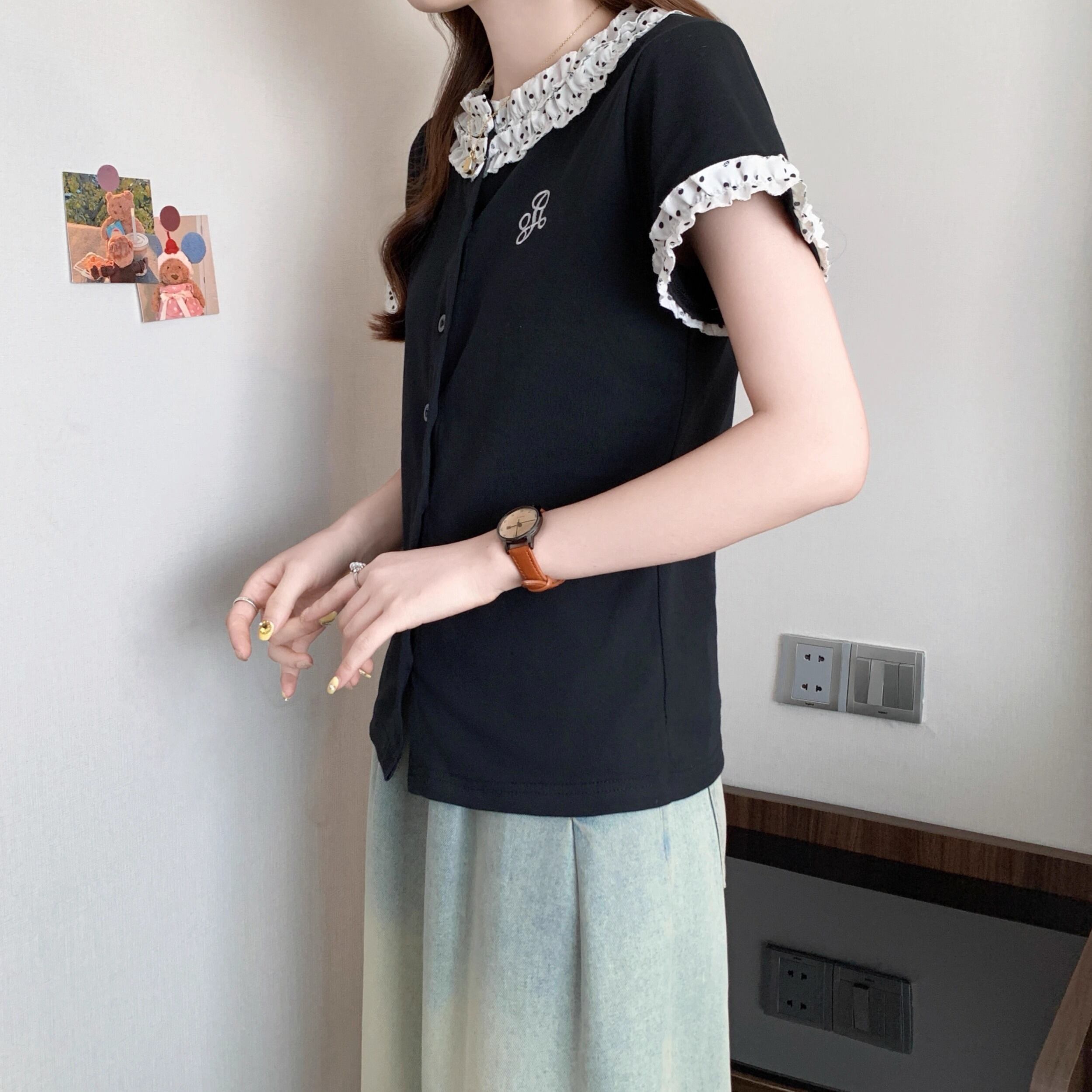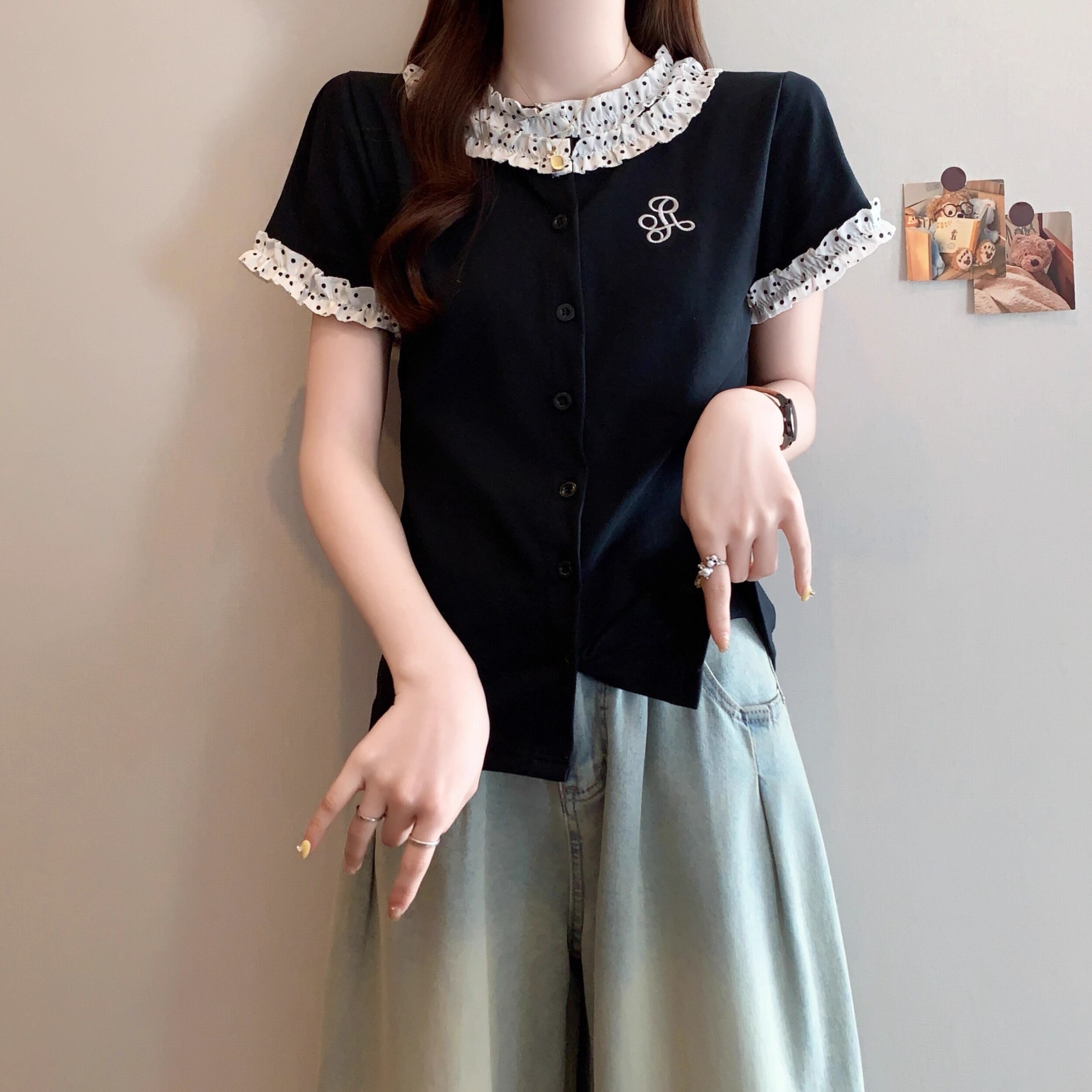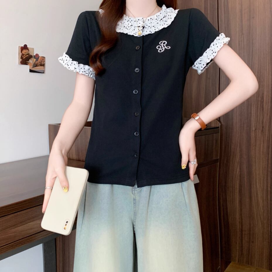 レースカラーアシメボタンドッキングトップス ・71106