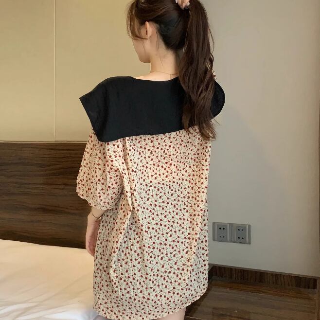 ボリュームスリーブレースラウンドカラーブラウス ・67546