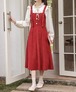 【2点セット】配色リボンヘムフリルワンピ+フリルストラップフレアジャンスカ ・50112