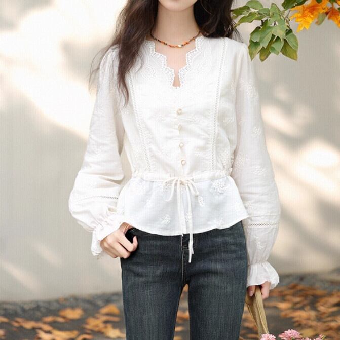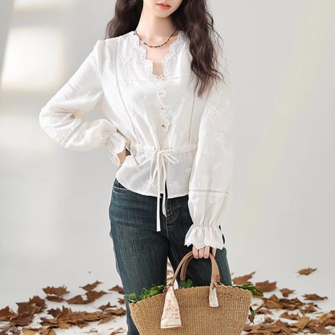 ボリュームスリーブレースラウンドカラーブラウス ・67546