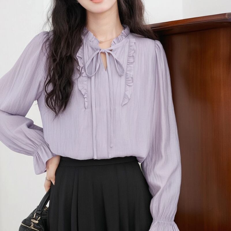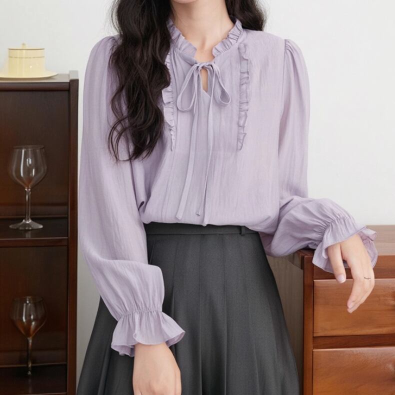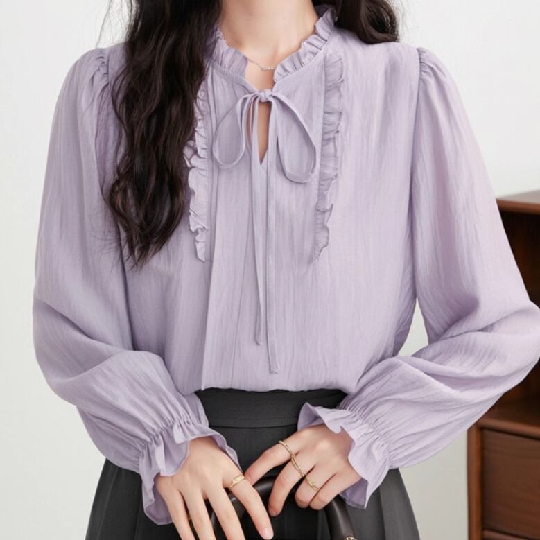 ボリュームスリーブレースラウンドカラーブラウス ・67546
