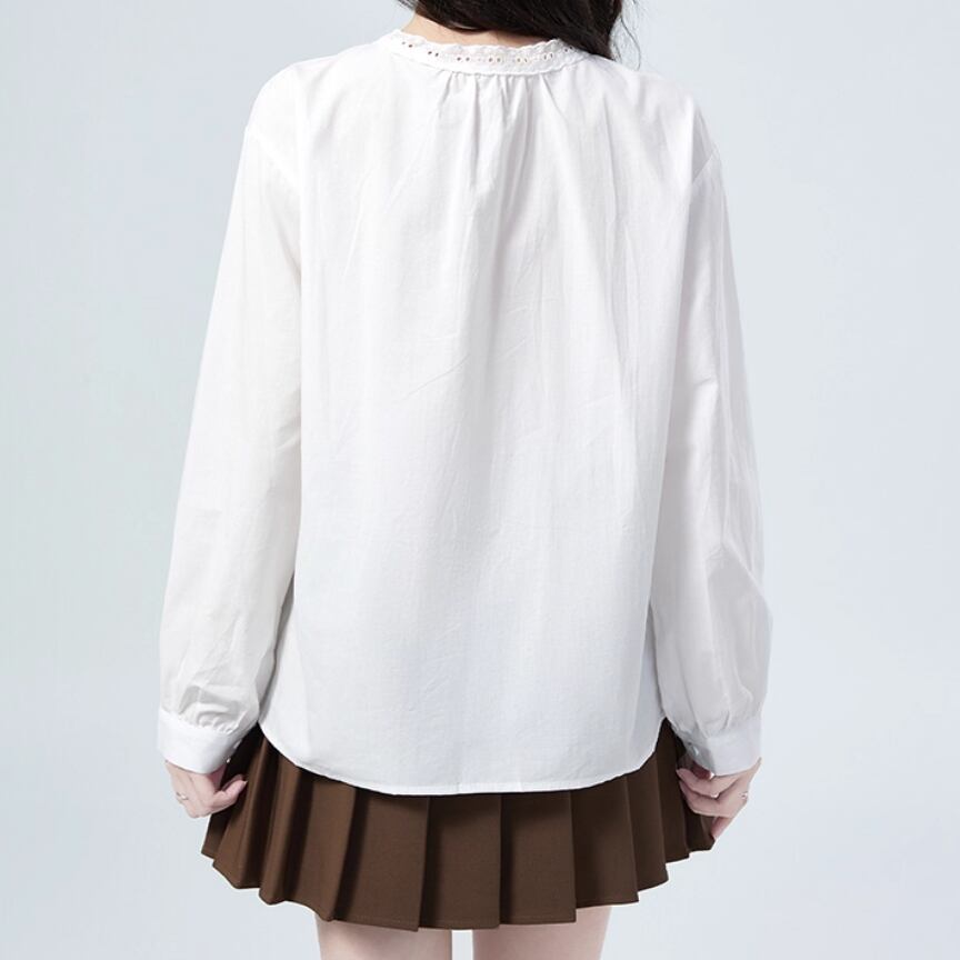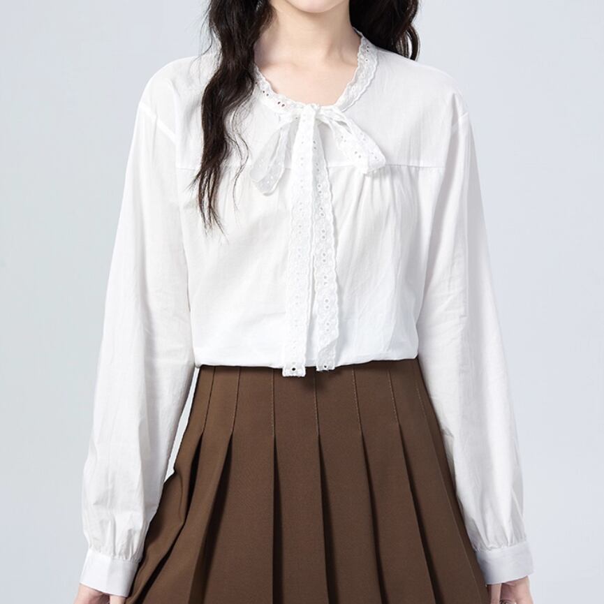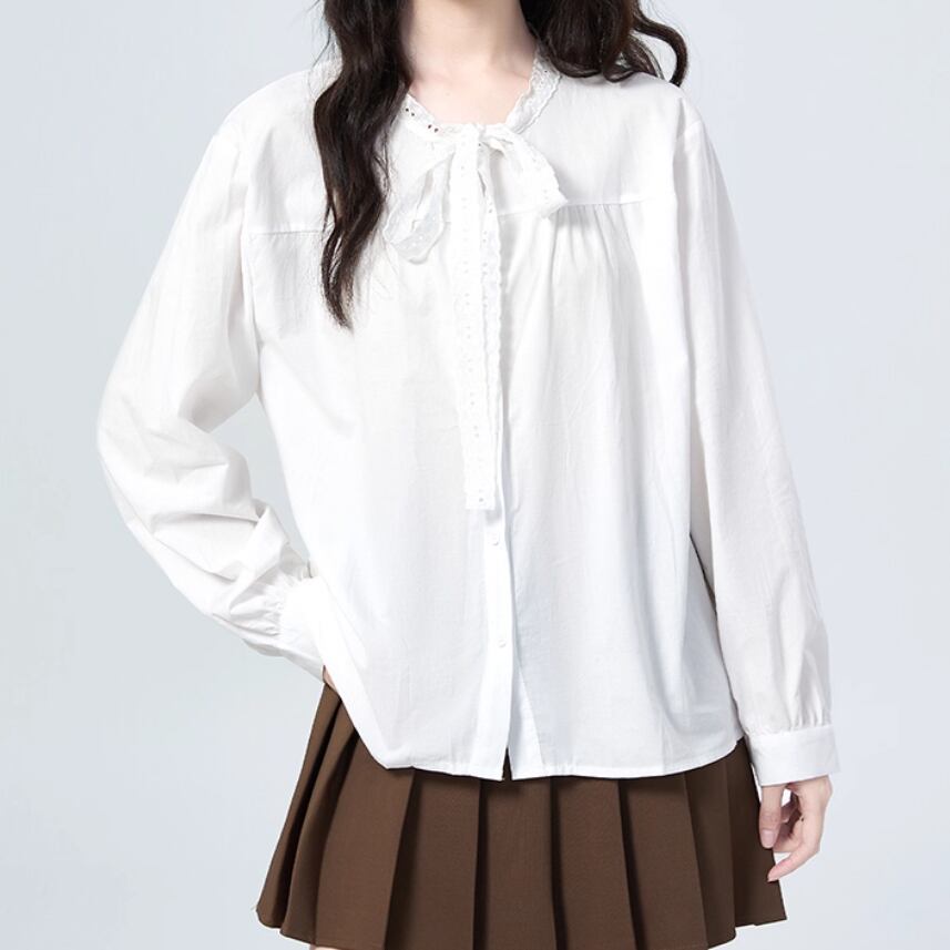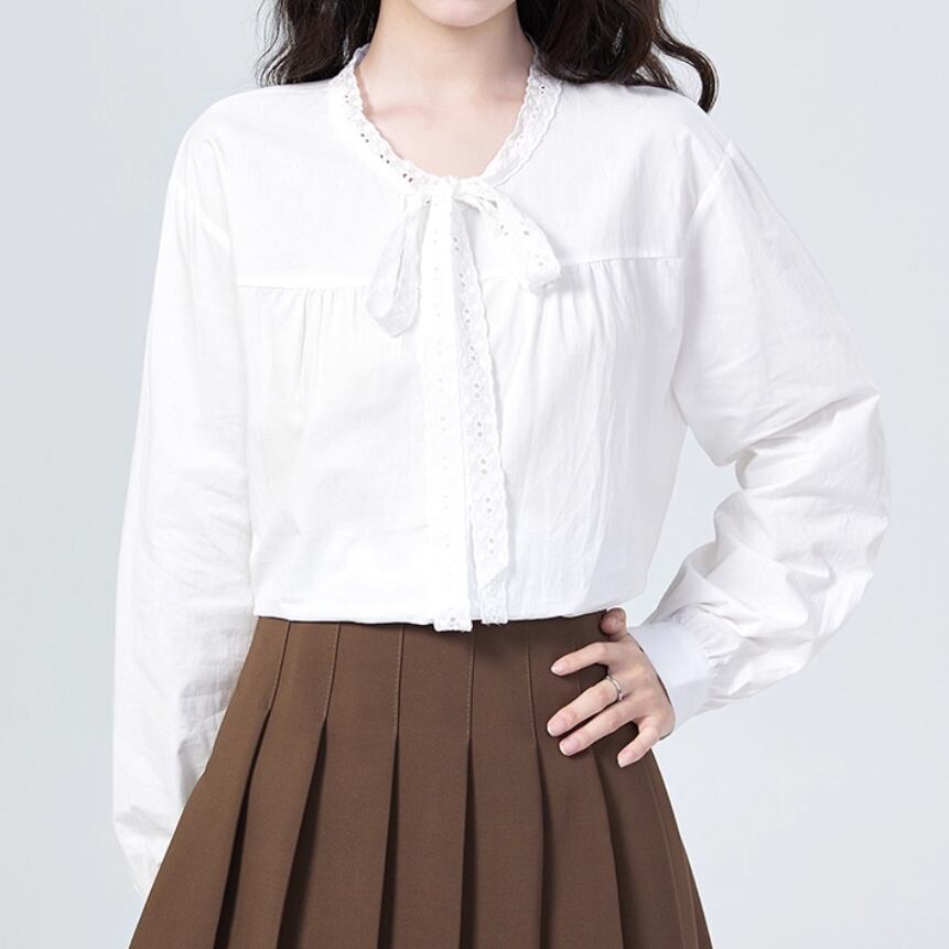 ボリュームスリーブレースラウンドカラーブラウス ・67546