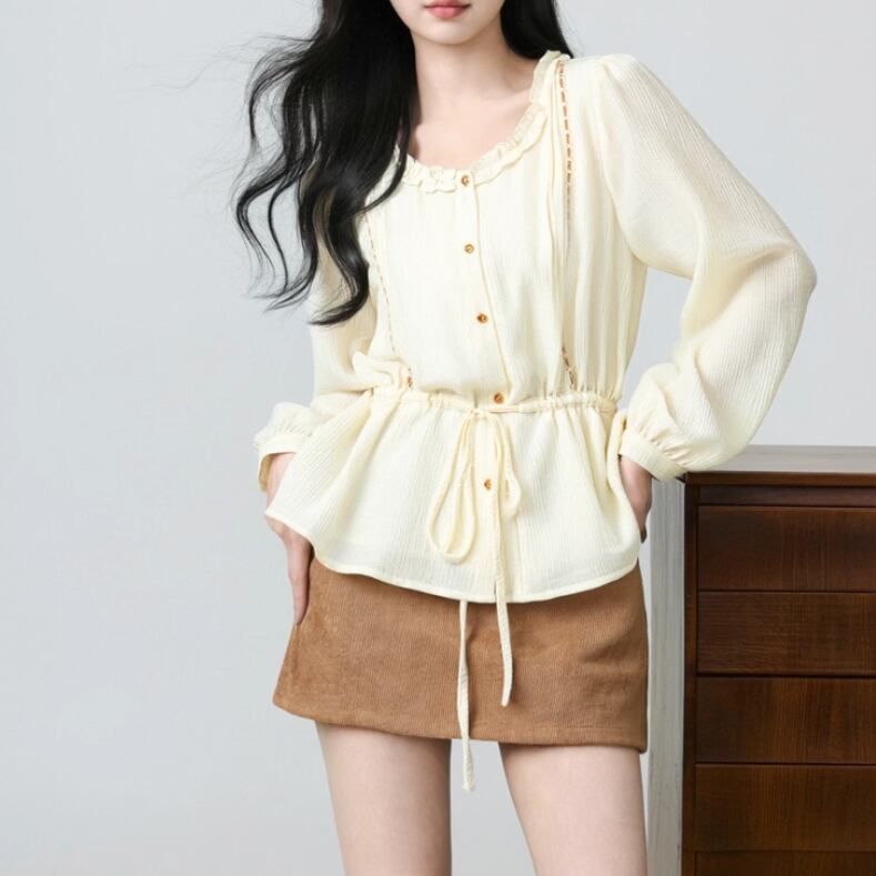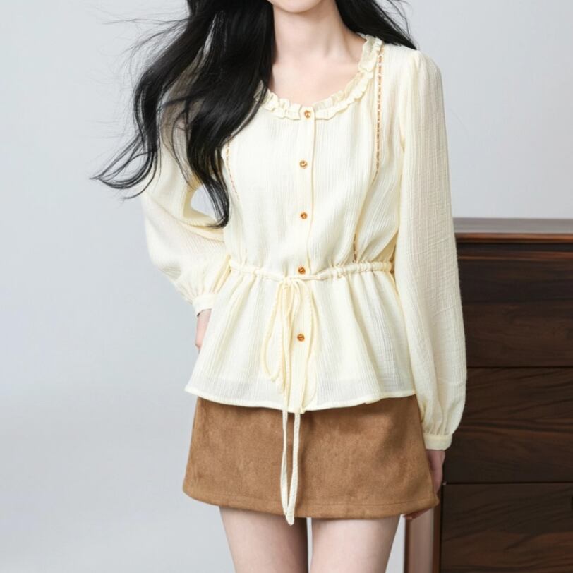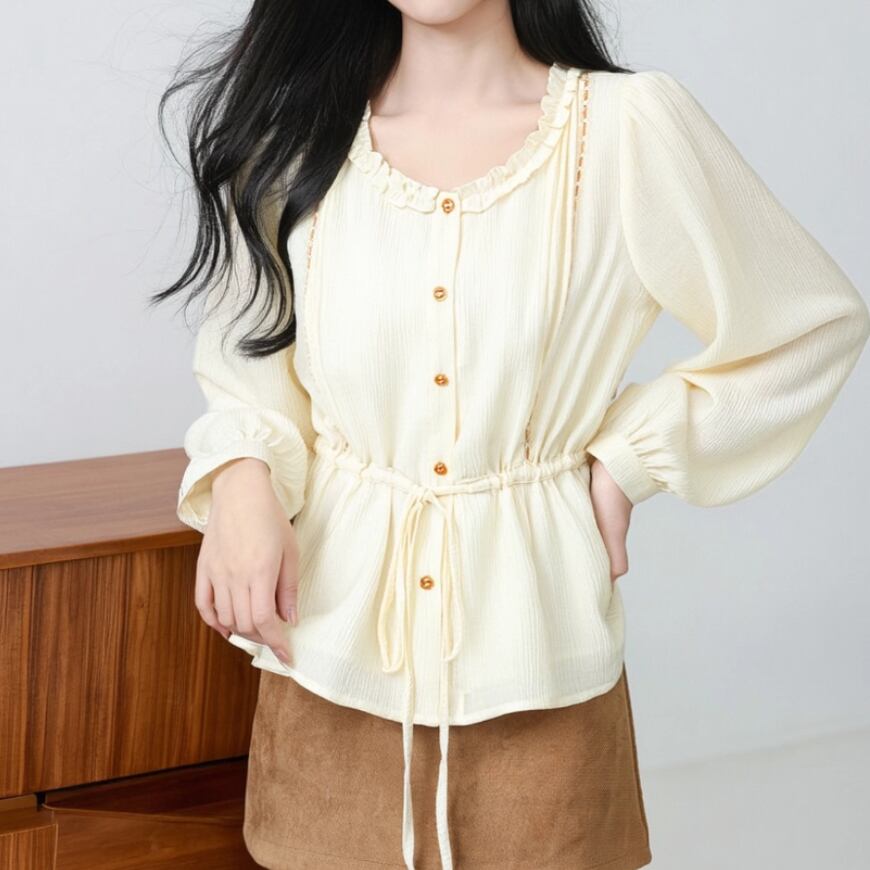 ボリュームスリーブレースラウンドカラーブラウス ・67546