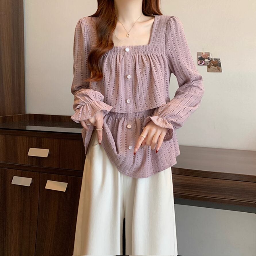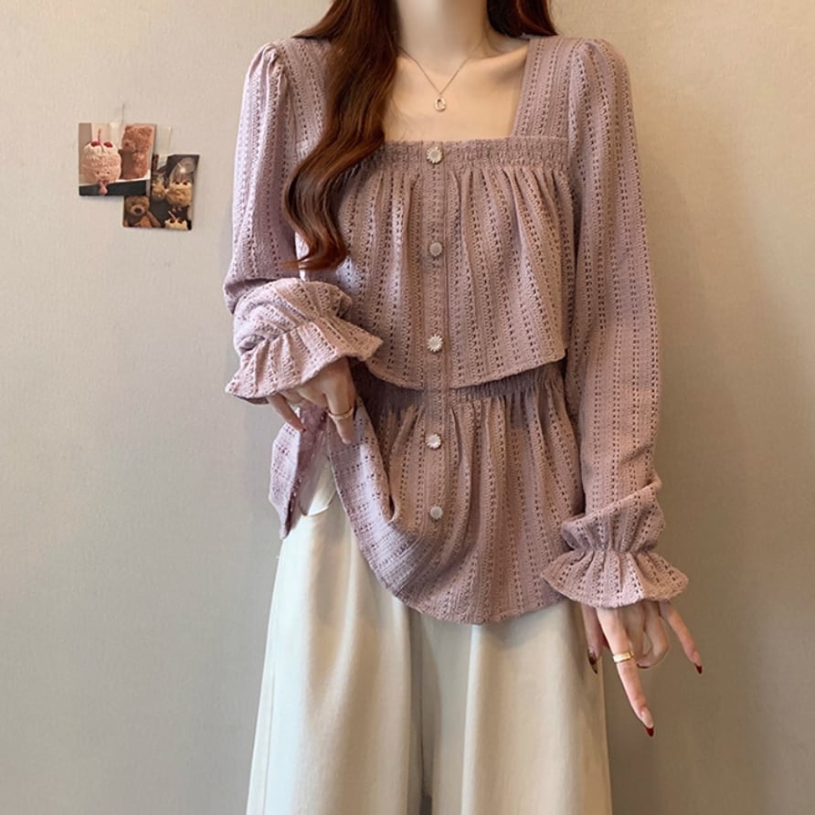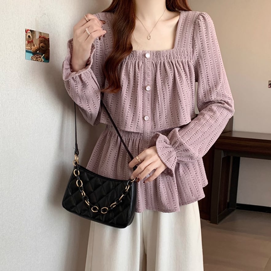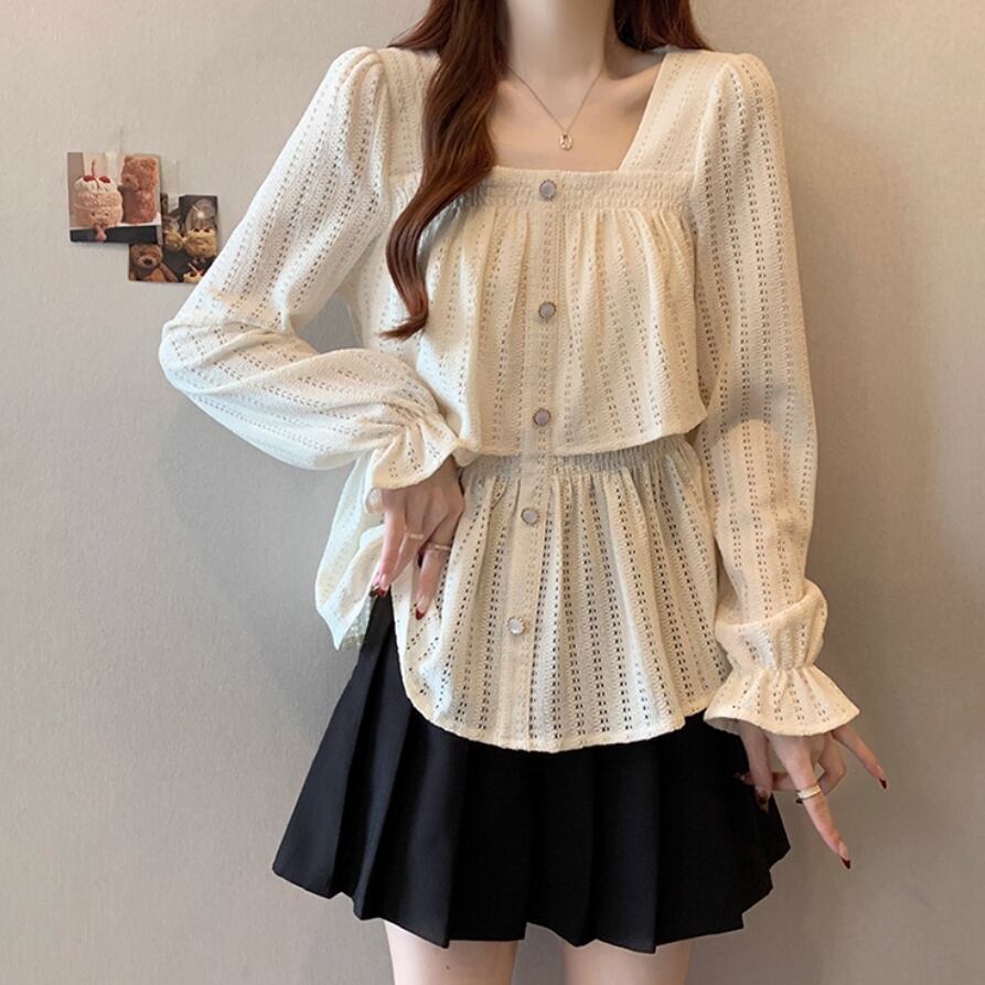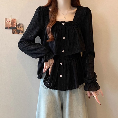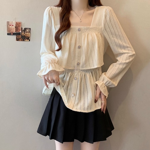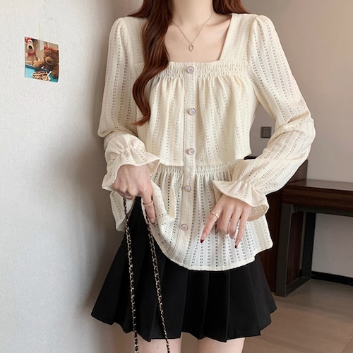 ボリュームスリーブレースラウンドカラーブラウス ・67546