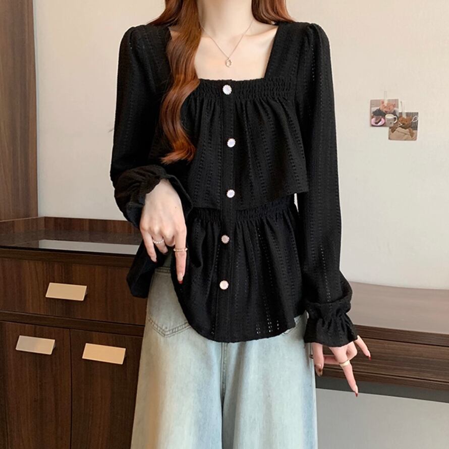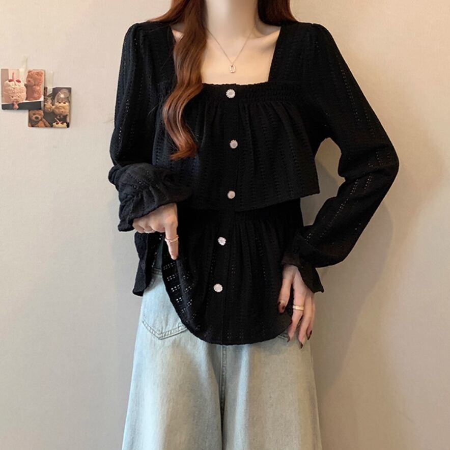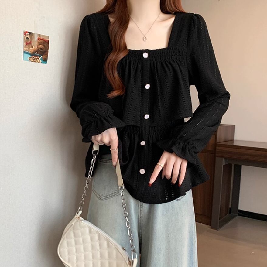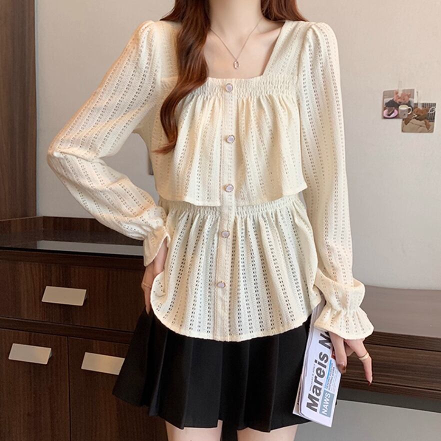 ボリュームスリーブレースラウンドカラーブラウス ・67546