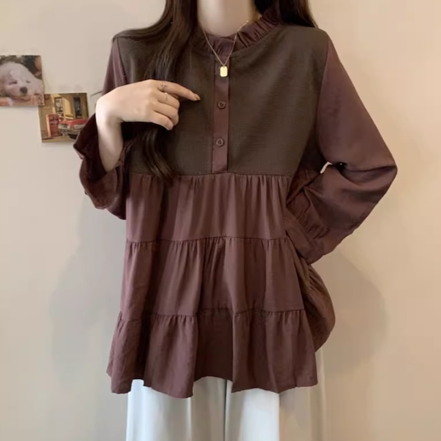 2色/フリルネックティアードギャザーブラウス ・75504