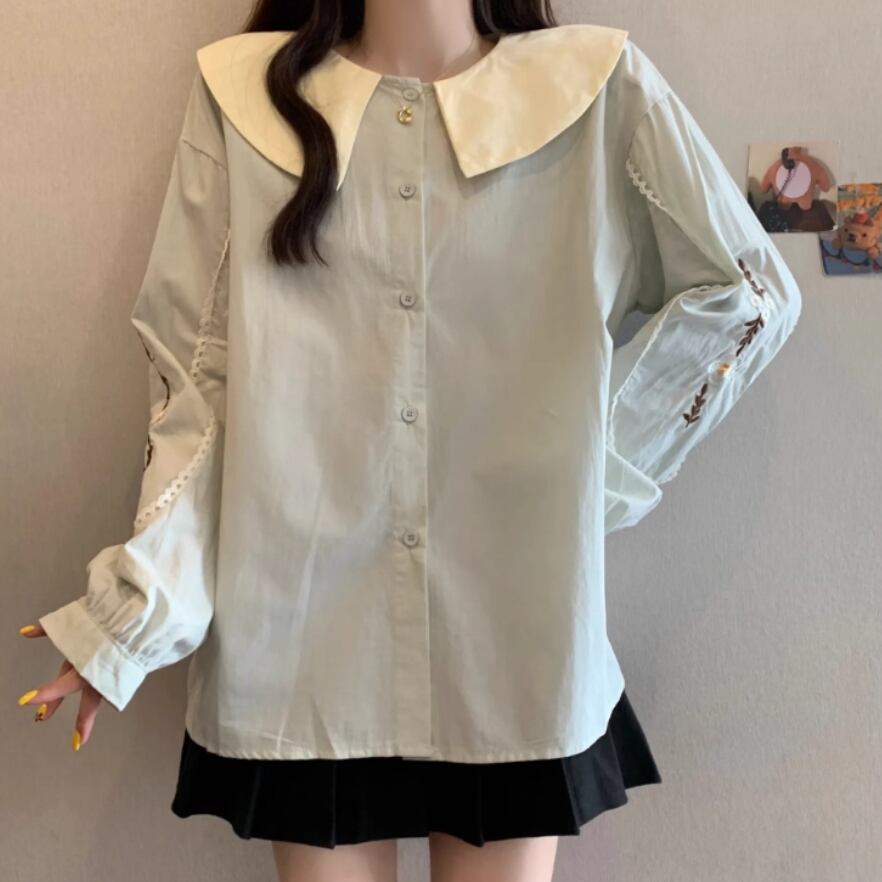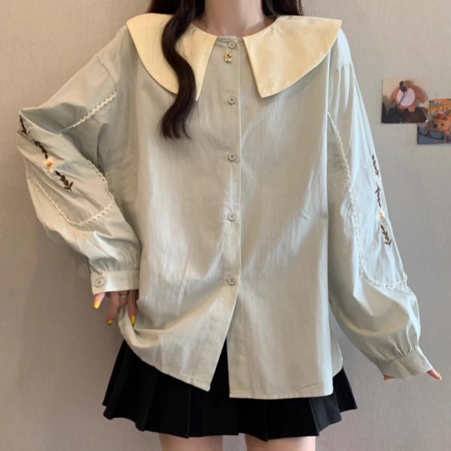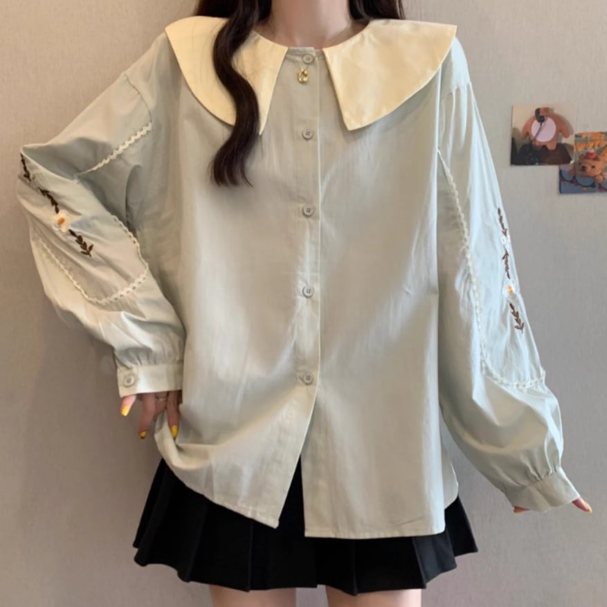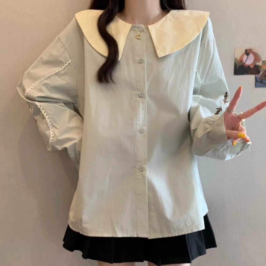 ボリュームスリーブレースラウンドカラーブラウス ・67546