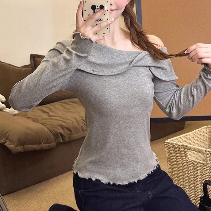 レースカラーアシメボタンドッキングトップス ・71106