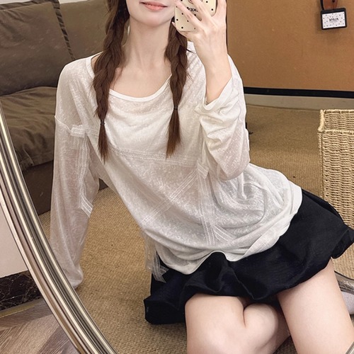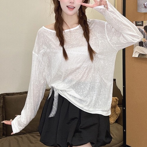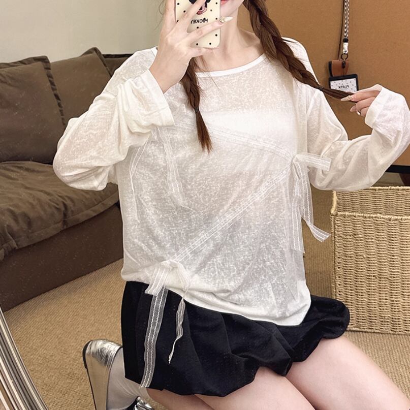 レースカラーアシメボタンドッキングトップス ・71106