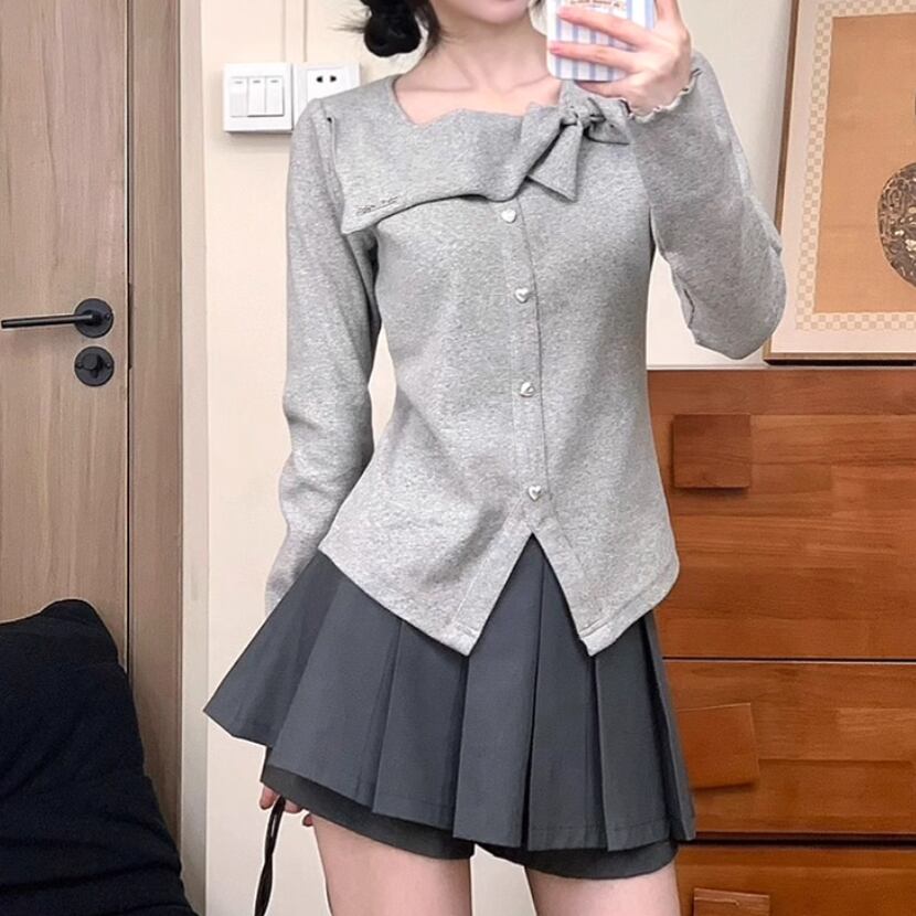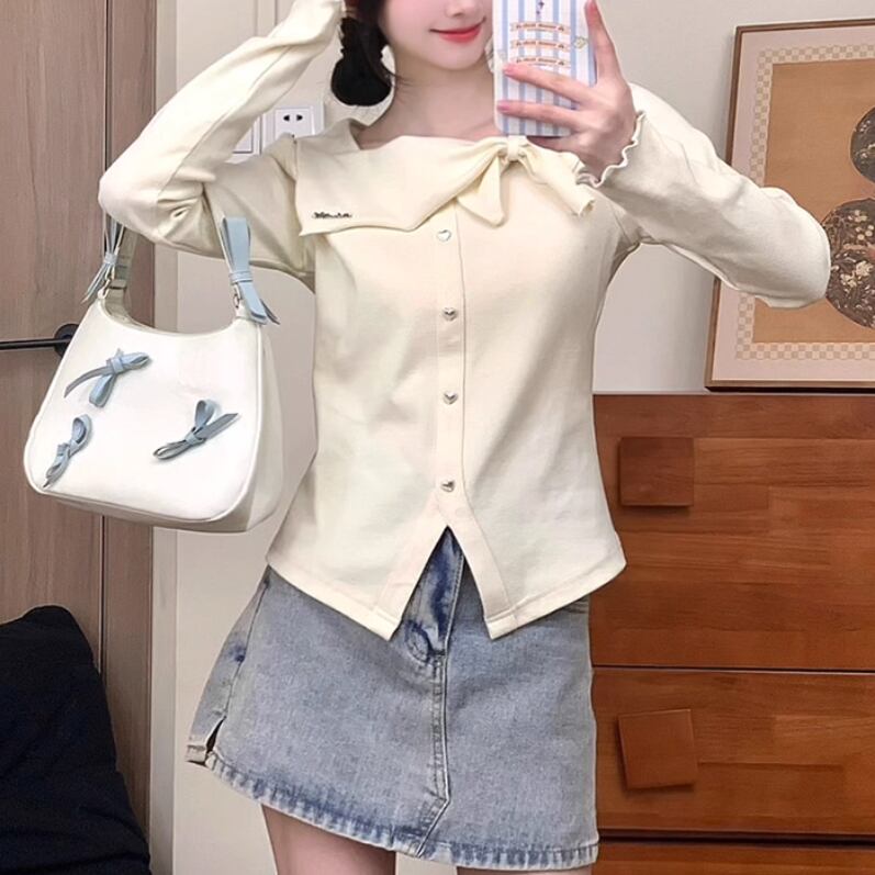 レースカラーアシメボタンドッキングトップス ・71106