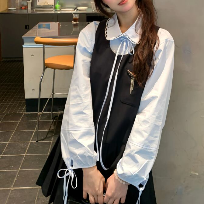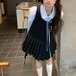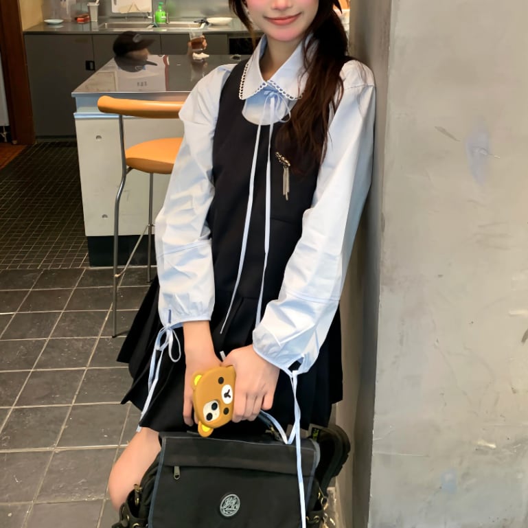 【2点セット】配色リボンヘムフリルワンピ+フリルストラップフレアジャンスカ ・50112