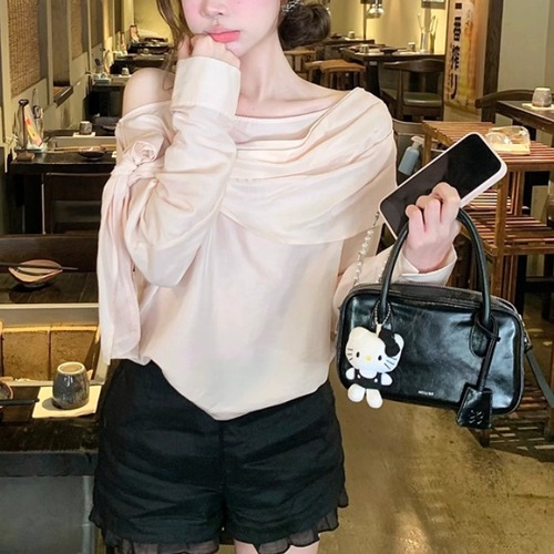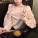 ボリュームスリーブレースラウンドカラーブラウス ・67546