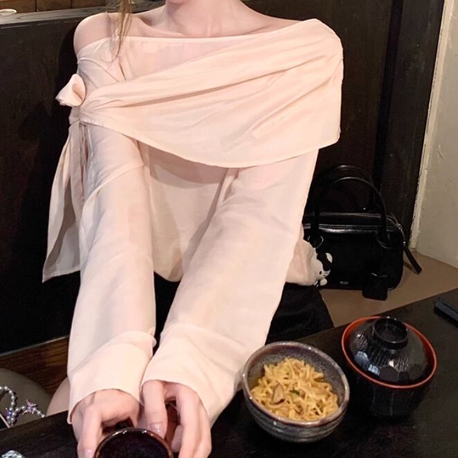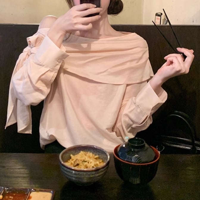 2色/フリルネックリボンブラウス ・60387