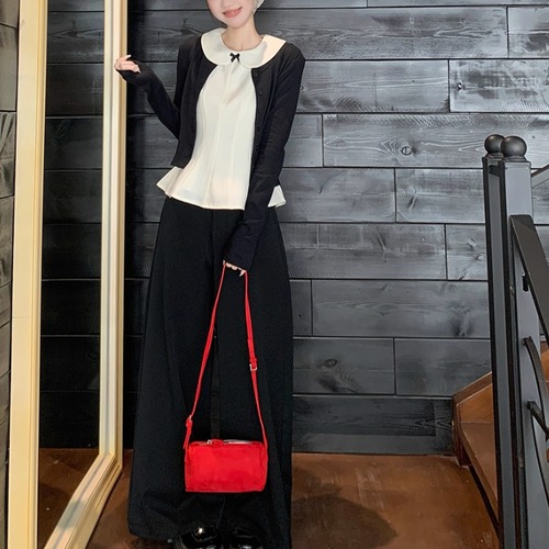 ▽Instagram「新作情報配信中」 フォローお願いいたします。 https://www.instagram.com/sucrier_closet/ ▼カラー ホワイト+ブラック ▼サイズ [ Sサイズ ] ブラウス:着丈55cm バスト80cm 肩幅34cm カーデ:着丈46cm バスト79cm 肩幅35cm 袖丈64cm パンツ:着丈102cm ウエスト68cm ヒップ96cm [ Mサイズ ] ブラウス:着丈56cm バスト84cm 肩幅35cm カーデ:着丈47cm バスト83cm 肩幅36cm 袖丈65cm パンツ:着丈103cm ウエスト72cm ヒップ100cm [ Lサイズ ] ブラウス:着丈57cm バスト88cm 肩幅36cm カーデ:着丈48cm バスト87cm 肩幅37cm 袖丈66cm パンツ:着丈104cm ウエスト76cm ヒップ104cm [ XLサイズ ] ブラウス:着丈58cm バスト92cm 肩幅37cm カーデ:着丈49cm バスト91cm 肩幅38cm 袖丈67cm パンツ:着丈105cm ウエスト80cm ヒップ108cm ※1-3cm程度の誤差がある場合がございます。予めご了承ください。 ▼シーズン 春,秋 ▼同じカテゴリの商品はこちら https://www.sucrier.jp/categories/1737171 ▽お支払い方法 ・クレジットカード決済 ・キャリア決済 (docomo/au/Softbank/Y!mobile) ・後払い決済 (商品お届け後コンビニ払いなど) ▽注意点 ※こちらの商品は決済から10日-3週間前後でのお届けとなります。 ※配送日時指定等に関しては、ご指定できないことご了承くださいませ。 ※できる限り早くお届けできるように手配させて頂きます。 ※検品はしておりますが、もし届いた商品に不備がありましたら、誠実に対応させていただきます。 商品ID:SC071984