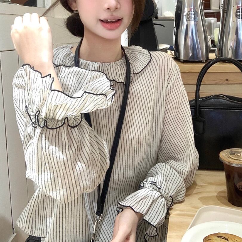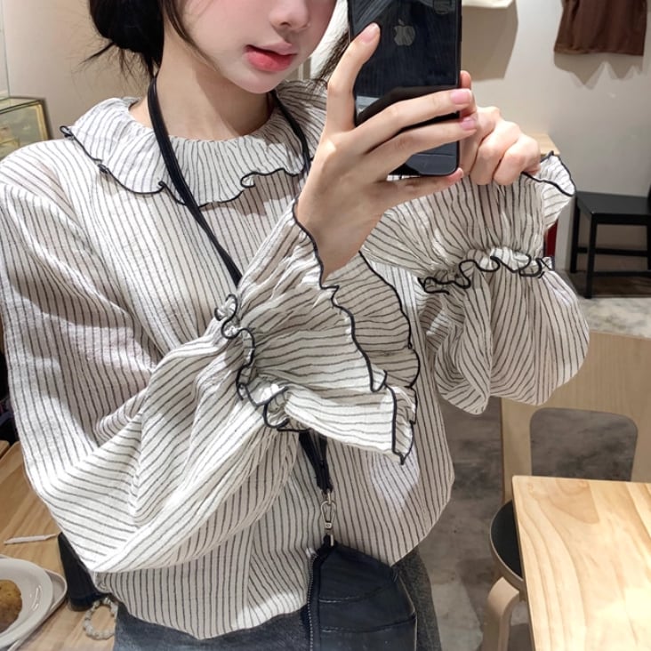 ボリュームスリーブレースラウンドカラーブラウス ・67546