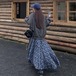 【2点セット】2色/ハイネックトップス+サイドベルトチェックジャンスカ ・72066