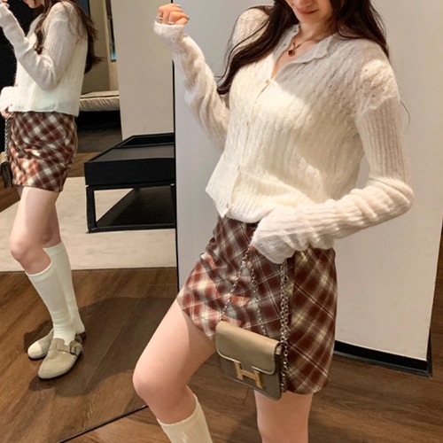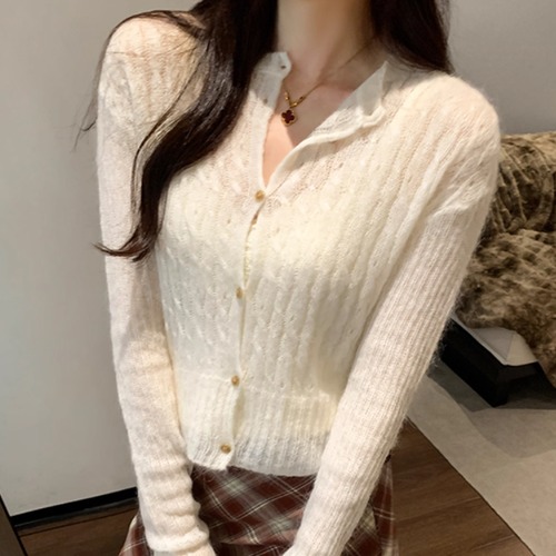2色/ノルディック柄ポロカラーニットカーデ ・72764
