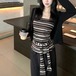 【2点セット】2色/ハイネックトップス+サイドベルトチェックジャンスカ ・72066