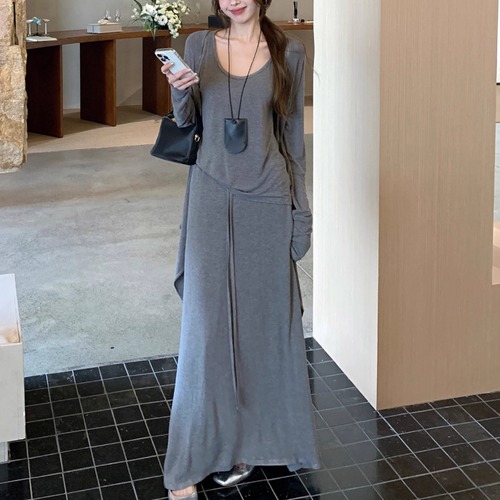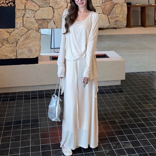 【2点セット】2色/ハイネックトップス+サイドベルトチェックジャンスカ ・72066