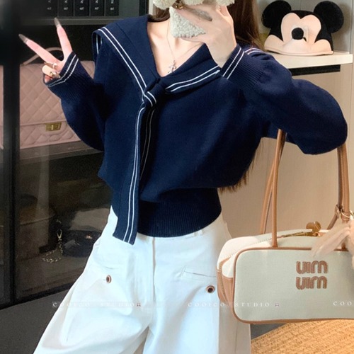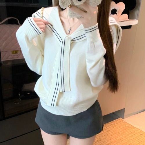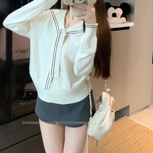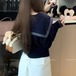 2色/フロントリボンフラワーラメニットトップス ・73833