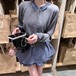 【2点セット】2色/ハイネックトップス+サイドベルトチェックジャンスカ ・72066