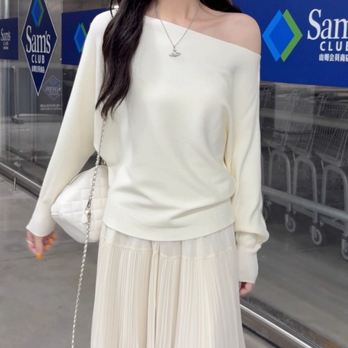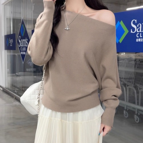 2色/フロントリボンフラワーラメニットトップス ・73833