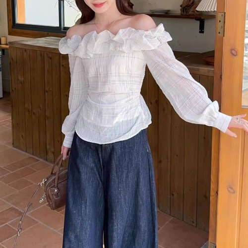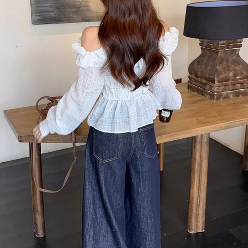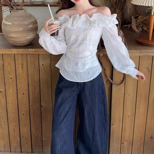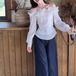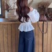 ボリュームスリーブレースラウンドカラーブラウス ・67546