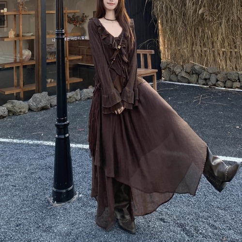 【2点セット】ショートジャケット+ファートリムティアードリボンキャミワンピ ・63097
