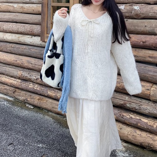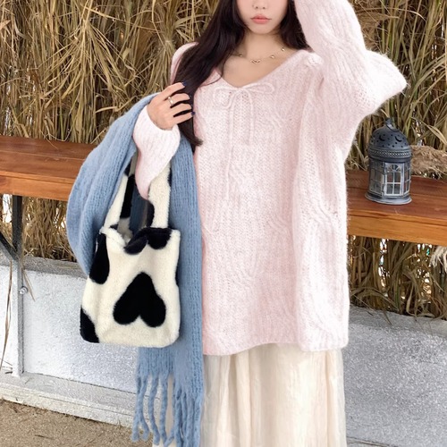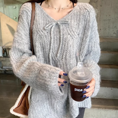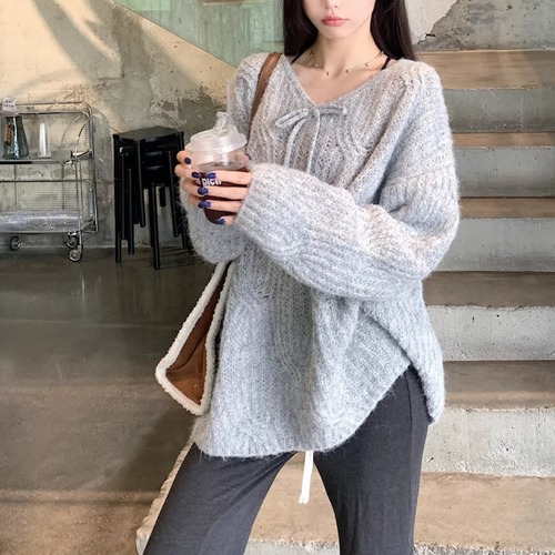 2色/フロントリボンフラワーラメニットトップス ・73833