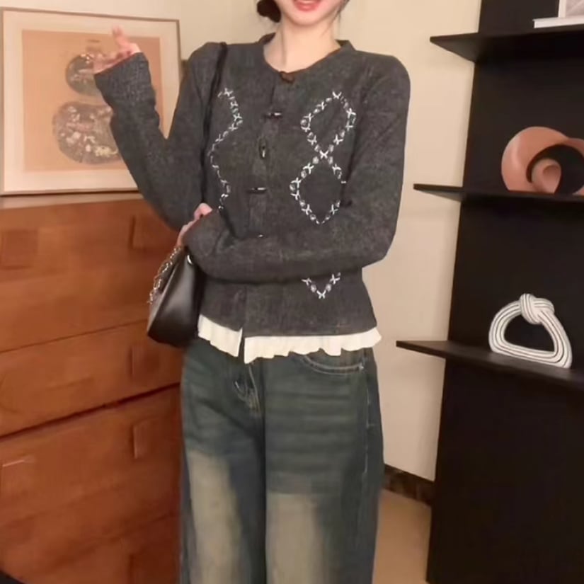 2色/ノルディック柄ポロカラーニットカーデ ・72764