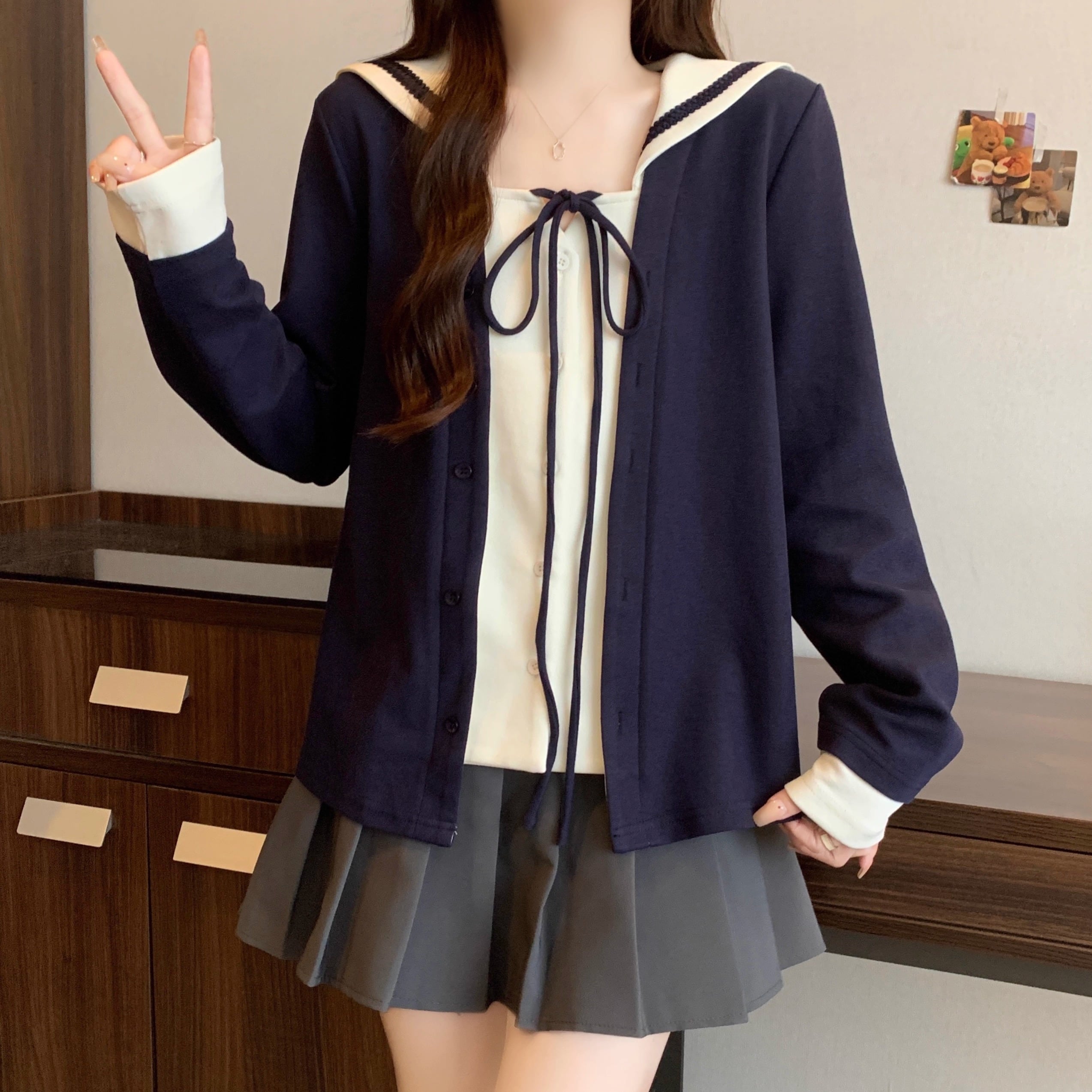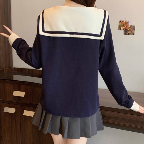 レースカラーアシメボタンドッキングトップス ・71106