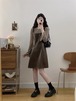 【2点セット】配色リボンヘムフリルワンピ+フリルストラップフレアジャンスカ ・50112