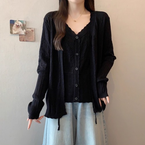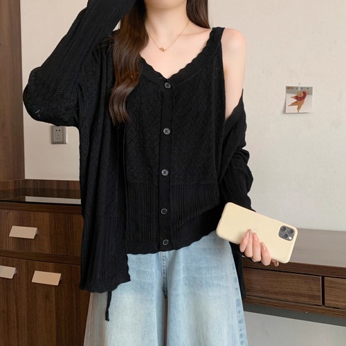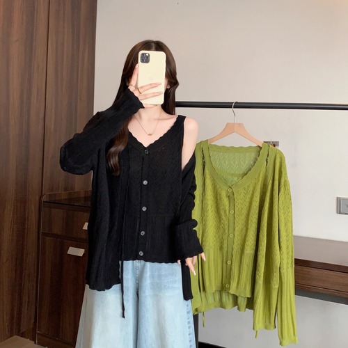 ▽Instagram「新作情報配信中」 フォローお願いいたします。 https://www.instagram.com/sucrier_closet/ ▼カラー グリーン(画像2枚目) ブラック(画像3枚目) ▼サイズ [ Lサイズ ] キャミ:着丈56cm バスト84cm カーデ:着丈63cm バスト118cm 袖丈65cm [ XLサイズ ] キャミ:着丈57cm バスト88cm カーデ:着丈64cm バスト122cm 袖丈66cm [ 2XLサイズ ] キャミ:着丈58cm バスト92cm カーデ:着丈65cm バスト126cm 袖丈67cm [ 3XLサイズ ] キャミ:着丈59cm バスト96cm カーデ:着丈66cm バスト130cm 袖丈68cm [ 4XLサイズ ] キャミ:着丈60cm バスト100cm カーデ:着丈67cm バスト134cm 袖丈69cm ※1-3cm程度の誤差がある場合がございます。予めご了承ください。 ▼シーズン 春,秋 ▼同じカテゴリの商品はこちら https://www.sucrier.jp/categories/1737171 ▽お支払い方法 ・クレジットカード決済 ・キャリア決済 (docomo/au/Softbank/Y!mobile) ・後払い決済 (商品お届け後コンビニ払いなど) ▽注意点 ※こちらの商品は決済から10日-3週間前後でのお届けとなります。 ※配送日時指定等に関しては、ご指定できないことご了承くださいませ。 ※できる限り早くお届けできるように手配させて頂きます。 ※検品はしておりますが、もし届いた商品に不備がありましたら、誠実に対応させていただきます。 商品ID:SC072116