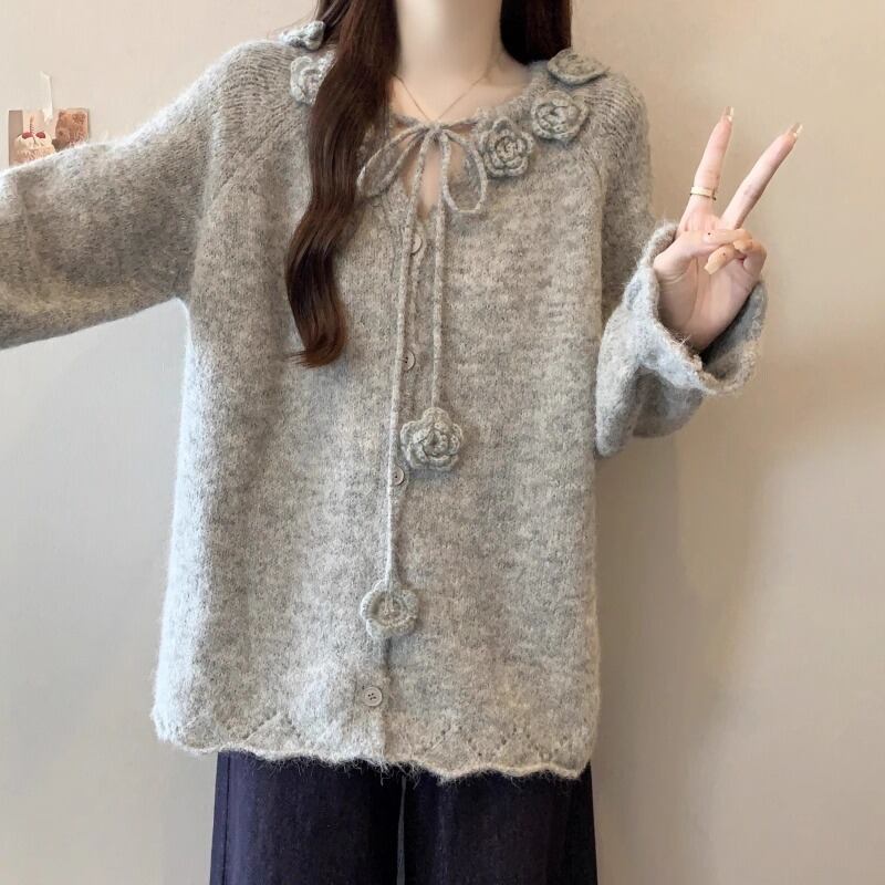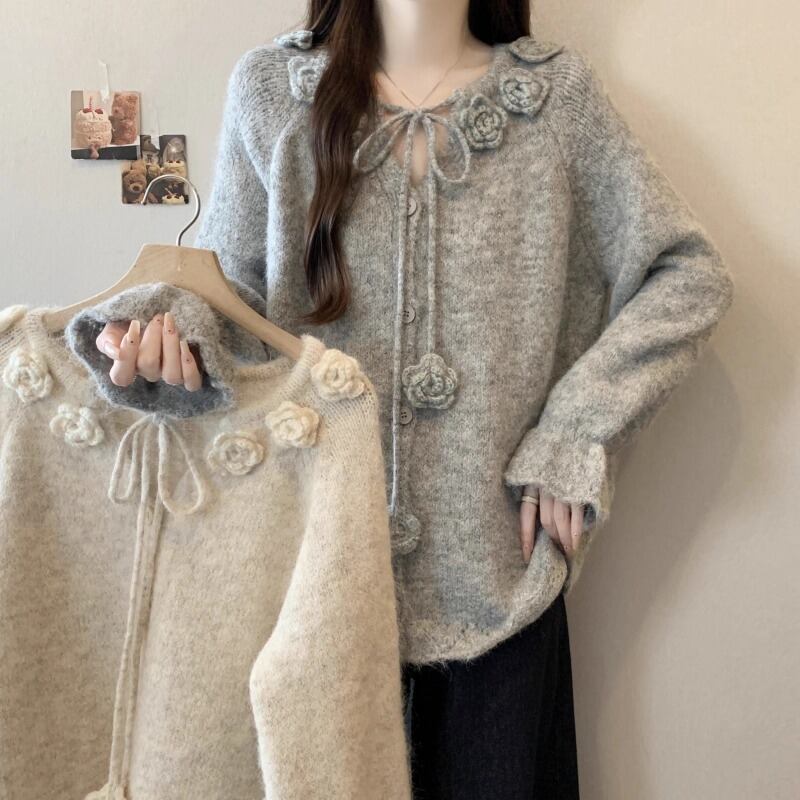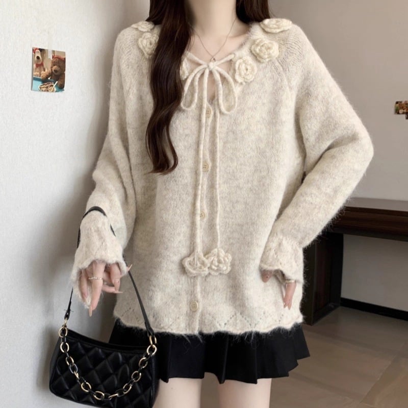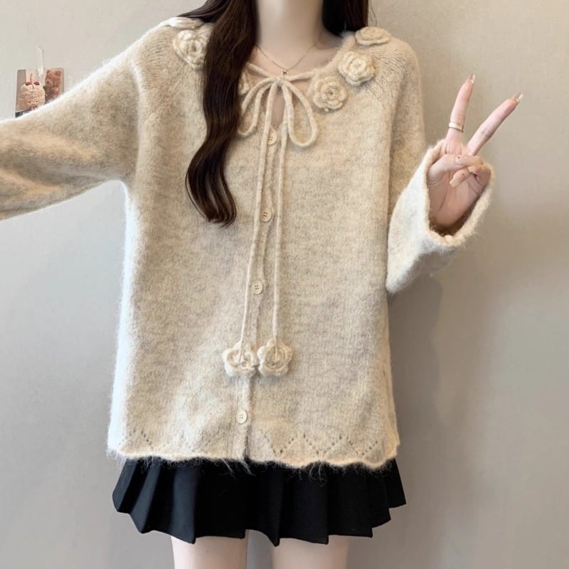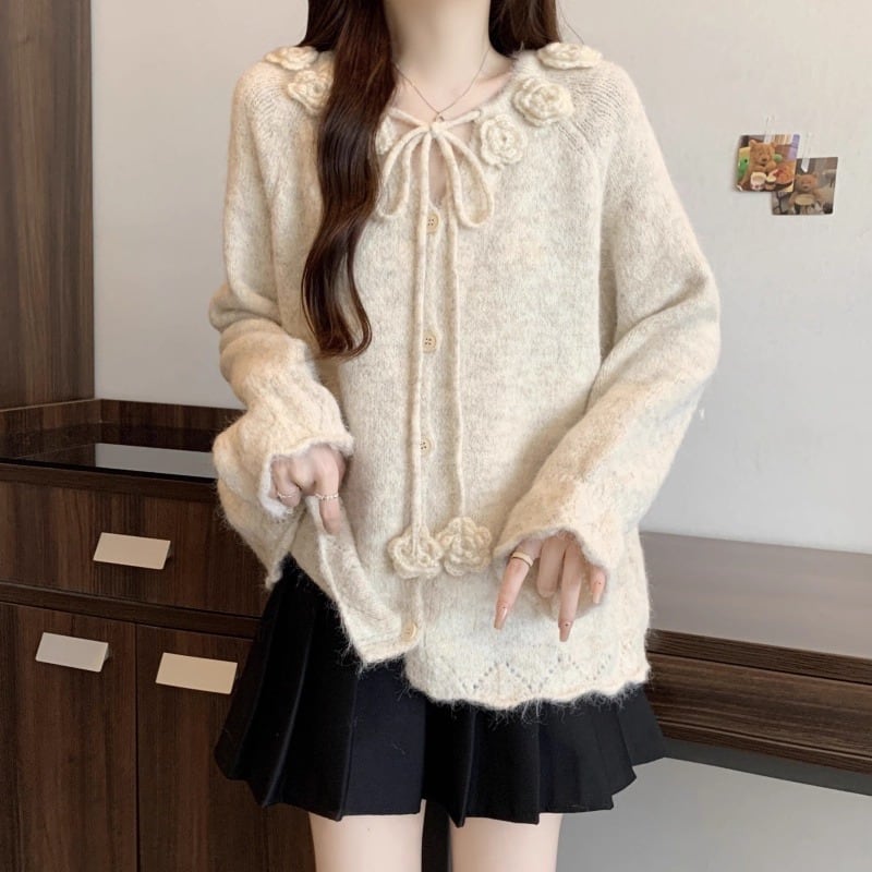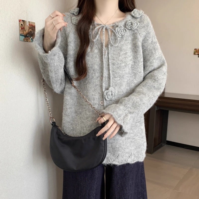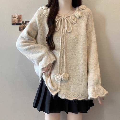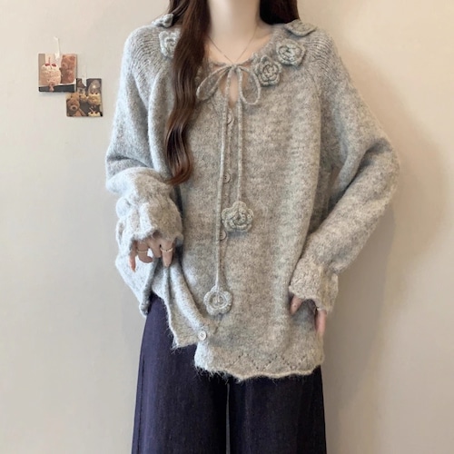 3色/リボンハニカムニットカーデ ・20306