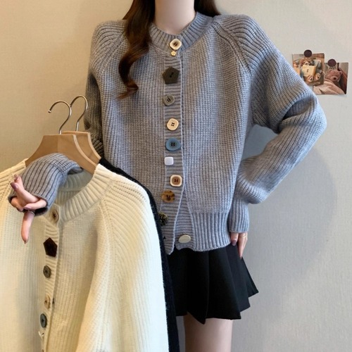 2色/ノルディック柄ポロカラーニットカーデ ・72764