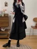 【2点セット】配色リボンヘムフリルワンピ+フリルストラップフレアジャンスカ ・50112