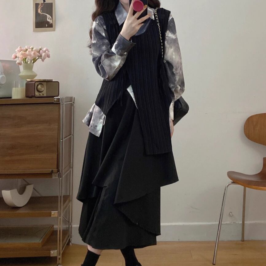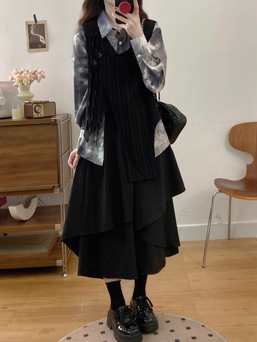 ▽Instagram「新作情報配信中」 フォローお願いいたします。 https://www.instagram.com/sucrier_closet/ ▼サイズ [ Mサイズ ] シャツ:着丈70cm バスト106cm 肩幅43cm ベスト:着丈78cm スカート:着丈84cm ウエスト62-72cm [ Lサイズ ] シャツ:着丈71cm バスト110cm 肩幅44cm ベスト:着丈79cm スカート:着丈85cm ウエスト66-76cm [ XLサイズ ] シャツ:着丈72cm バスト114cm 肩幅45cm ベスト:着丈80cm スカート:着丈86cm ウエスト70-80cm [ 2XLサイズ ] シャツ:着丈73cm バスト118cm 肩幅46cm ベスト:着丈81cm スカート:着丈87cm ウエスト74-84cm [ 3XLサイズ ] シャツ:着丈74cm バスト122cm 肩幅47cm ベスト:着丈82cm スカート:着丈88cm ウエスト78-88cm [ 4XLサイズ ] シャツ:着丈75cm バスト126cm 肩幅48cm ベスト:着丈83cm スカート:着丈89cm ウエスト82-92cm ※1-3cm程度の誤差がある場合がございます。予めご了承ください。 ▼シーズン 春,秋 ▼同じカテゴリの商品はこちら https://www.sucrier.jp/categories/1737171 ▽お支払い方法 ・クレジットカード決済 ・キャリア決済 (docomo/au/Softbank/Y!mobile) ・後払い決済 (商品お届け後コンビニ払いなど) ▽注意点 ※こちらの商品は決済から10日-3週間前後でのお届けとなります。 ※配送日時指定等に関しては、ご指定できないことご了承くださいませ。 ※できる限り早くお届けできるように手配させて頂きます。 ※検品はしておりますが、もし届いた商品に不備がありましたら、誠実に対応させていただきます。 商品ID:SC072101