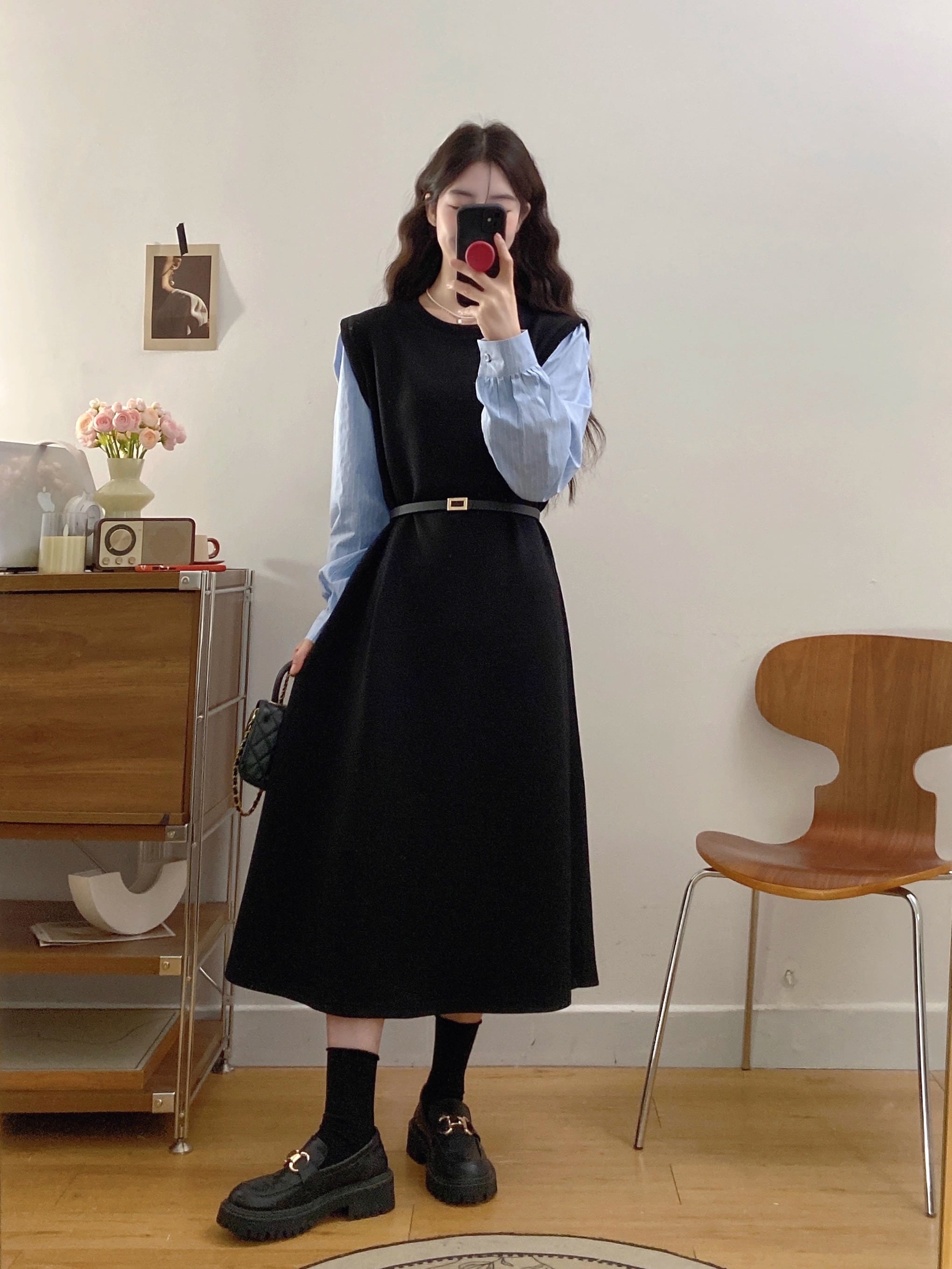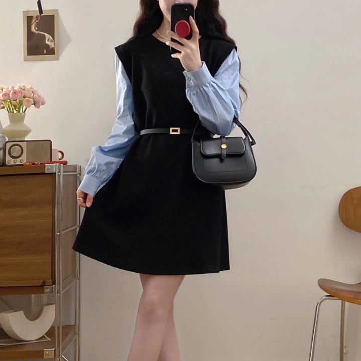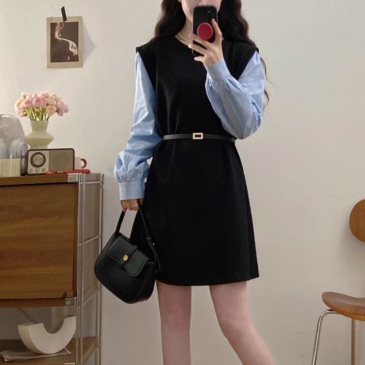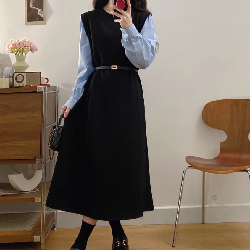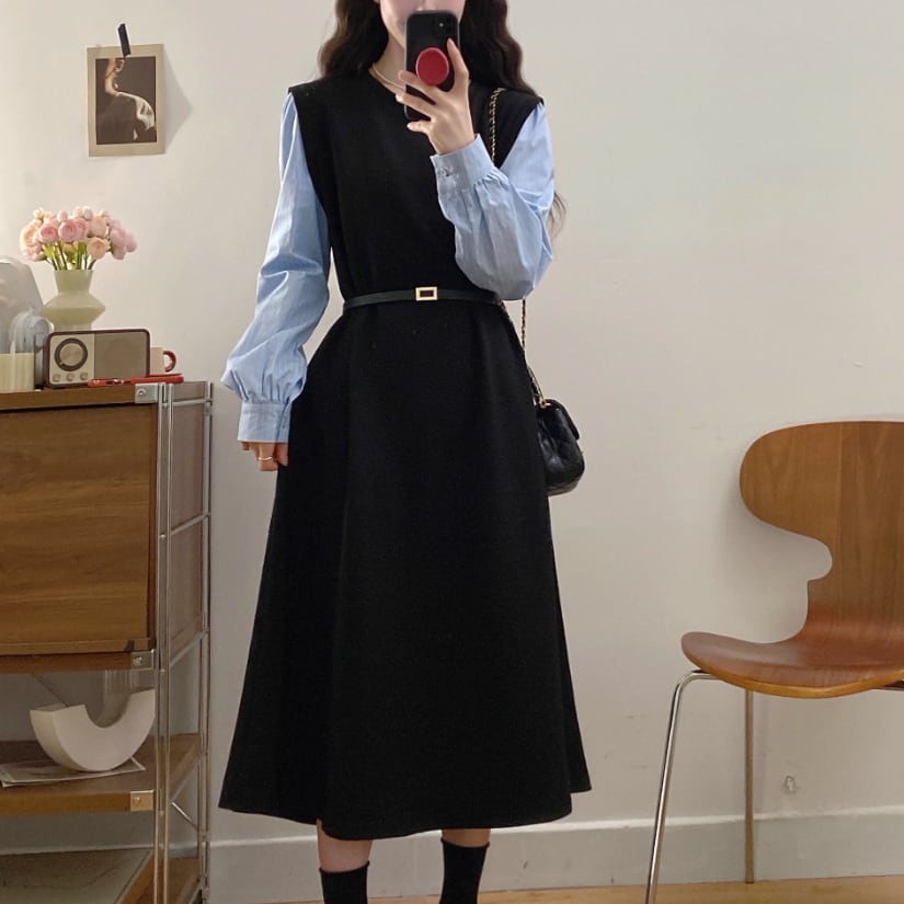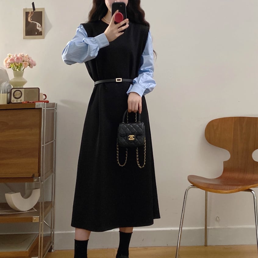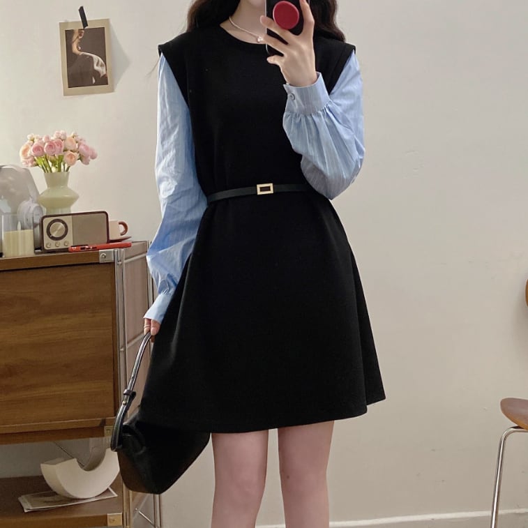 2色/切替ストライプリボンプリーツワンピ ・63127