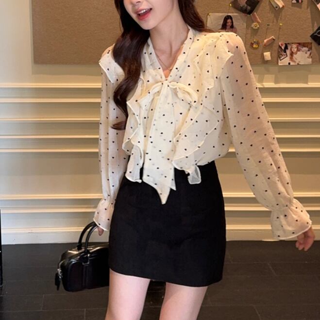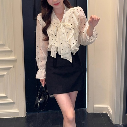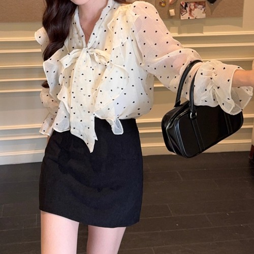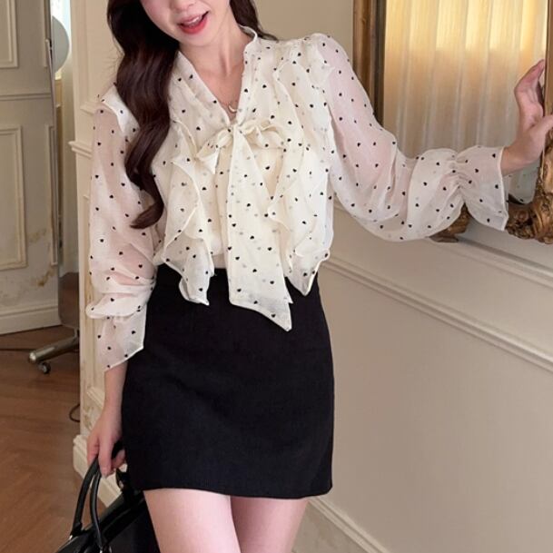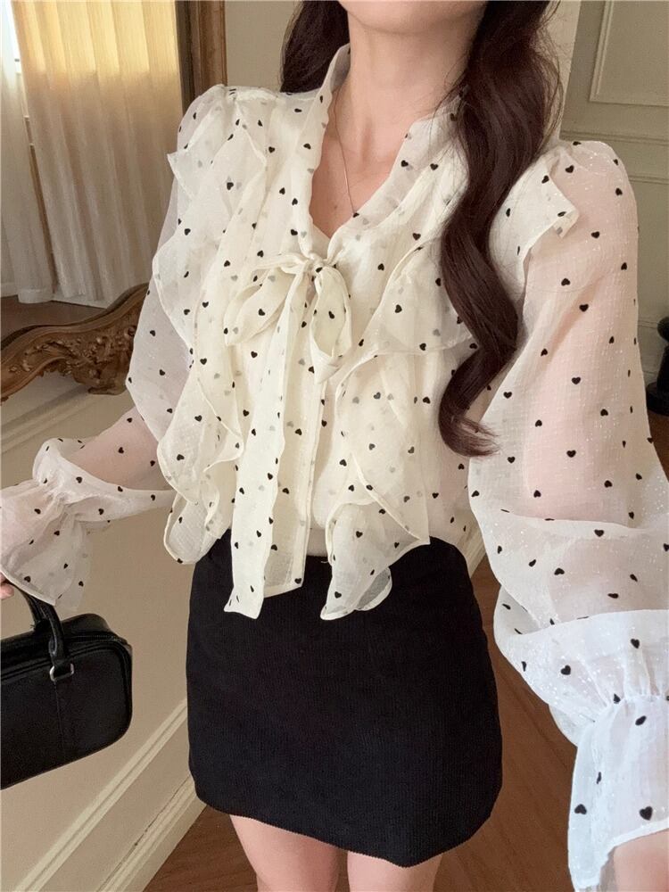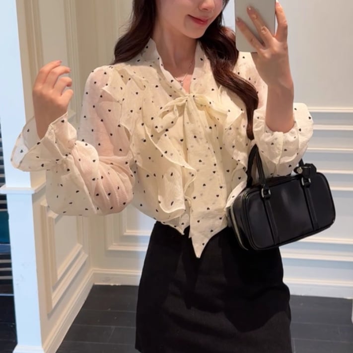 ボリュームスリーブレースラウンドカラーブラウス ・67546