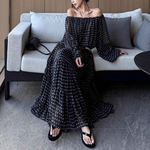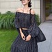 【2点セット】配色リボンヘムフリルワンピ+フリルストラップフレアジャンスカ ・50112