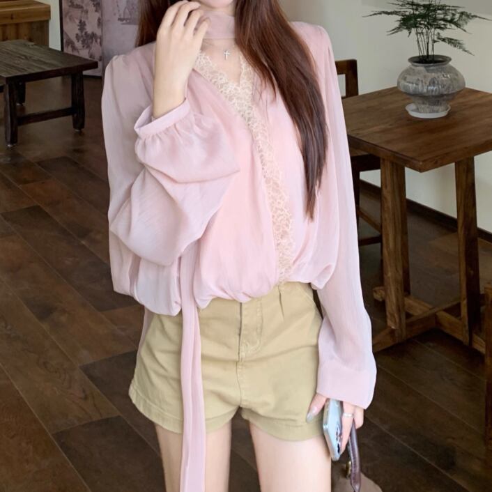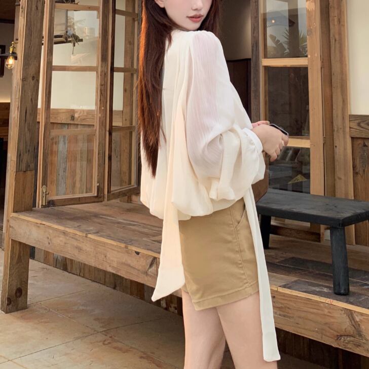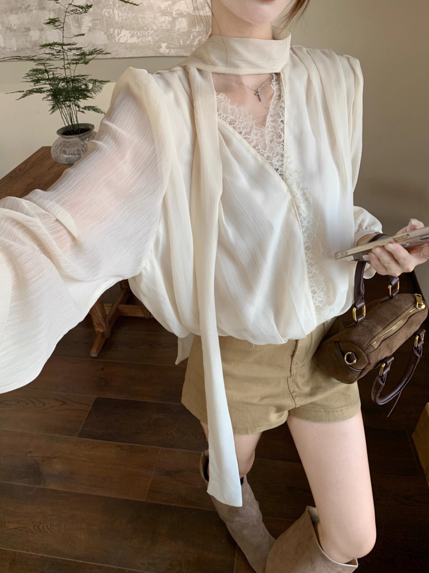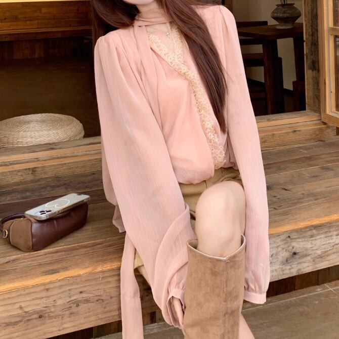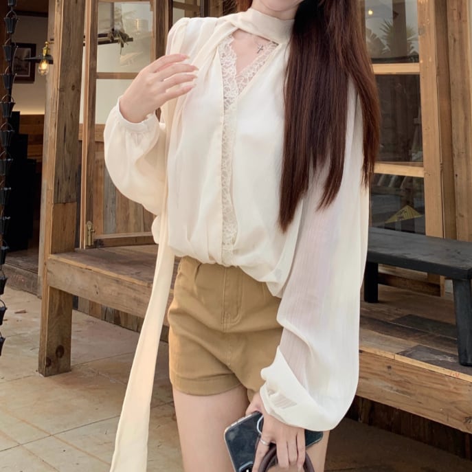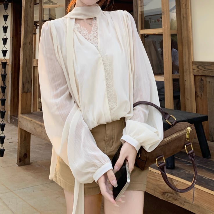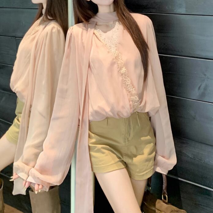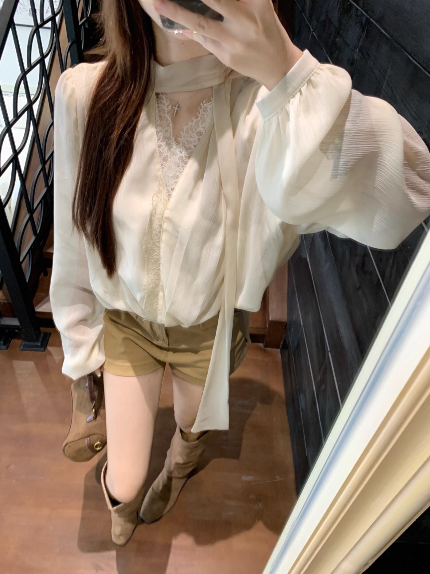 ボリュームスリーブレースラウンドカラーブラウス ・67546
