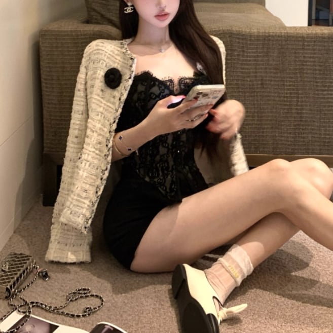 【2点セット】ショートジャケット+ファートリムティアードリボンキャミワンピ ・63097
