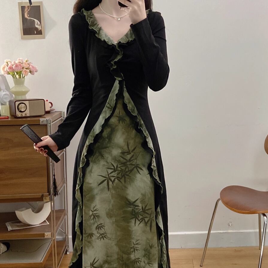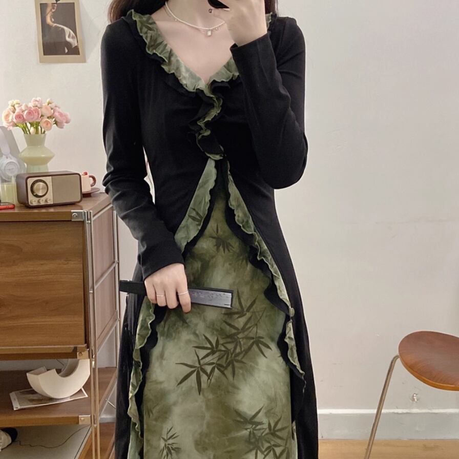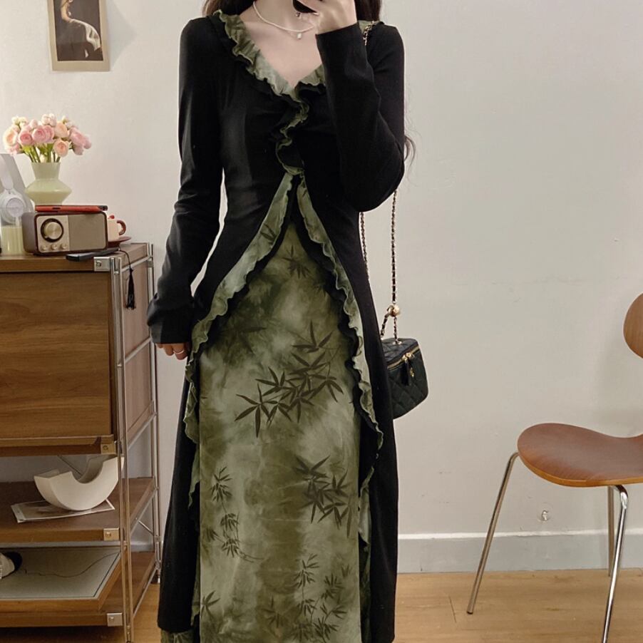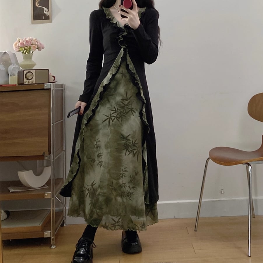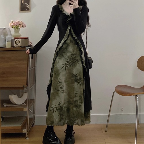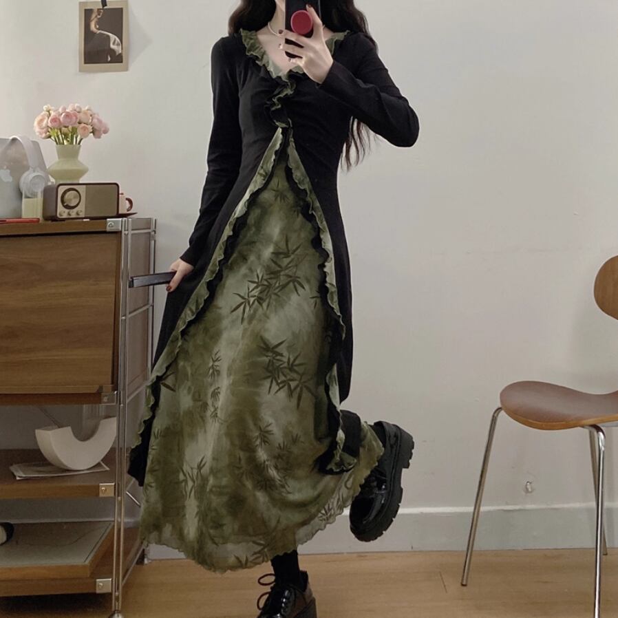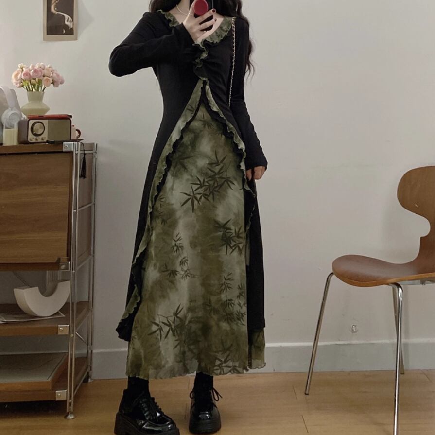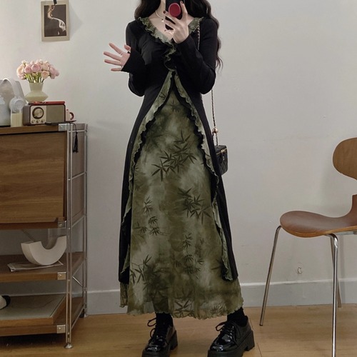 バイカラーリボンフリルヘムワンピ ・71394
