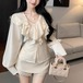 【2点セット】ダブルボタンボウタイチェックジャケット+ミニスカ ・59729