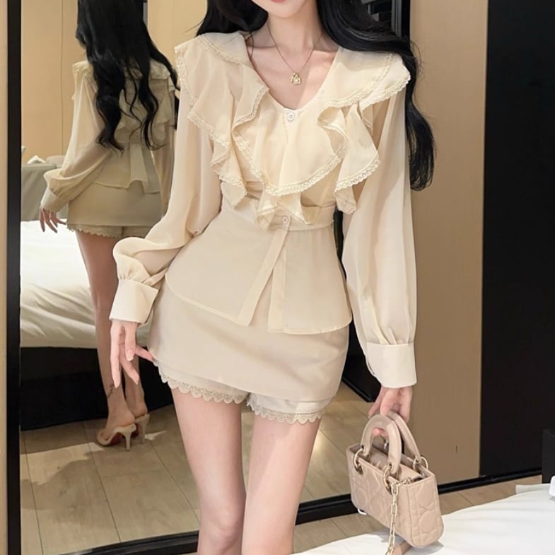 ▽Instagram「新作情報配信中」 フォローお願いいたします。 https://www.instagram.com/sucrier_closet/ ▼サイズ [ Sサイズ ] ブラウス:着丈54cm バスト84cm 袖丈60cm スカート:着丈32cm ウエスト64cm [ Mサイズ ] ブラウス:着丈55cm バスト88cm 袖丈61cm スカート:着丈33cm ウエスト68cm [ Lサイズ ] ブラウス:着丈56cm バスト92cm 袖丈62cm スカート:着丈34cm ウエスト72cm ※1-3cm程度の誤差がある場合がございます。予めご了承ください。 ▼シーズン 春,秋 ▼同じカテゴリの商品はこちら https://www.sucrier.jp/categories/1737171 ▽お支払い方法 ・クレジットカード決済 ・キャリア決済 (docomo/au/Softbank/Y!mobile) ・後払い決済 (商品お届け後コンビニ払いなど) ▽注意点 ※こちらの商品は決済から10日-3週間前後でのお届けとなります。 ※配送日時指定等に関しては、ご指定できないことご了承くださいませ。 ※できる限り早くお届けできるように手配させて頂きます。 ※検品はしておりますが、もし届いた商品に不備がありましたら、誠実に対応させていただきます。 商品ID:SC071901